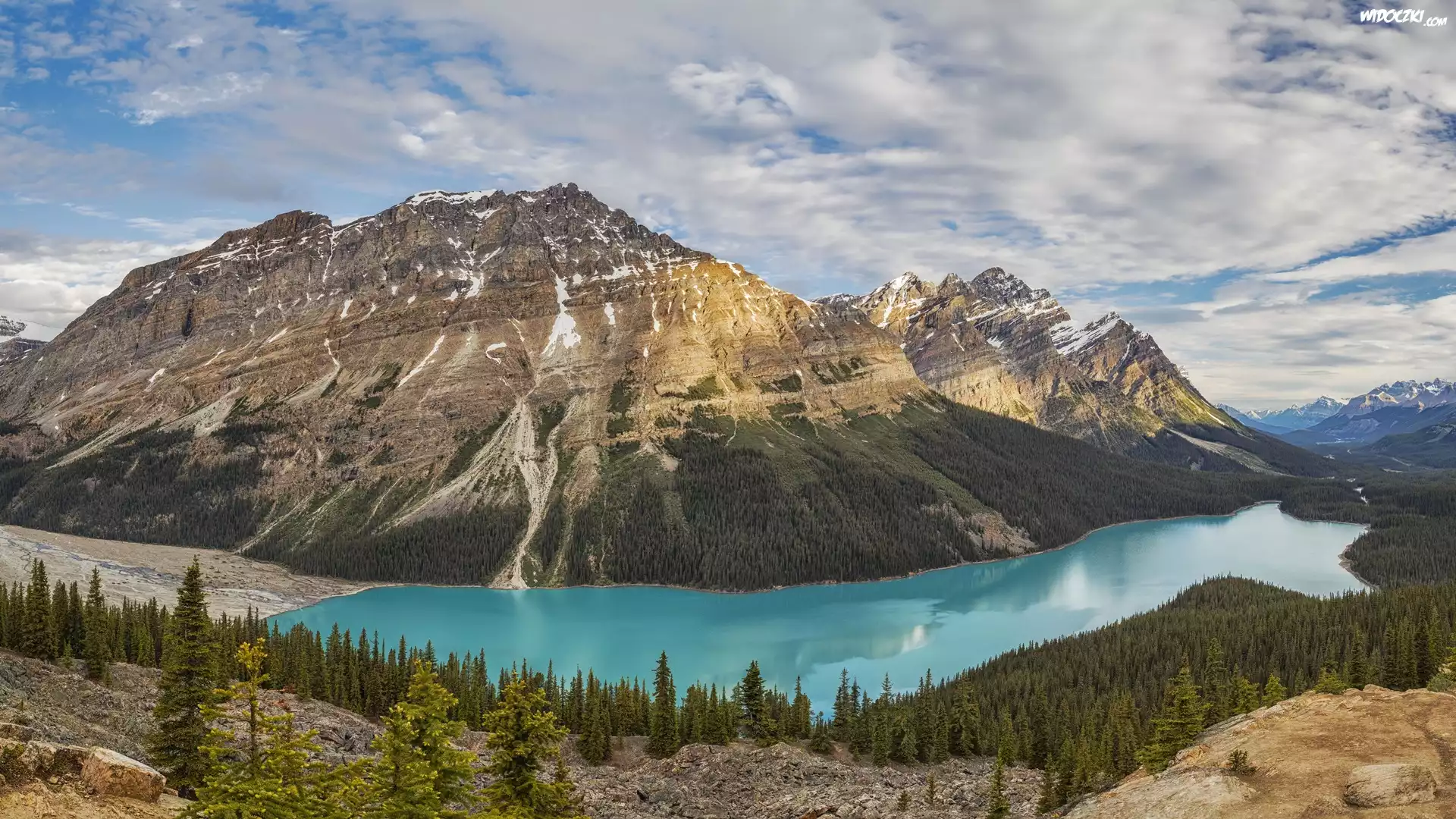 Zdjęcia, Park Narodowy Banff, Góry, Canadian Rockies, Jezioro, Peyto Lake, Lasy, Drzewa, Alberta, Kanada