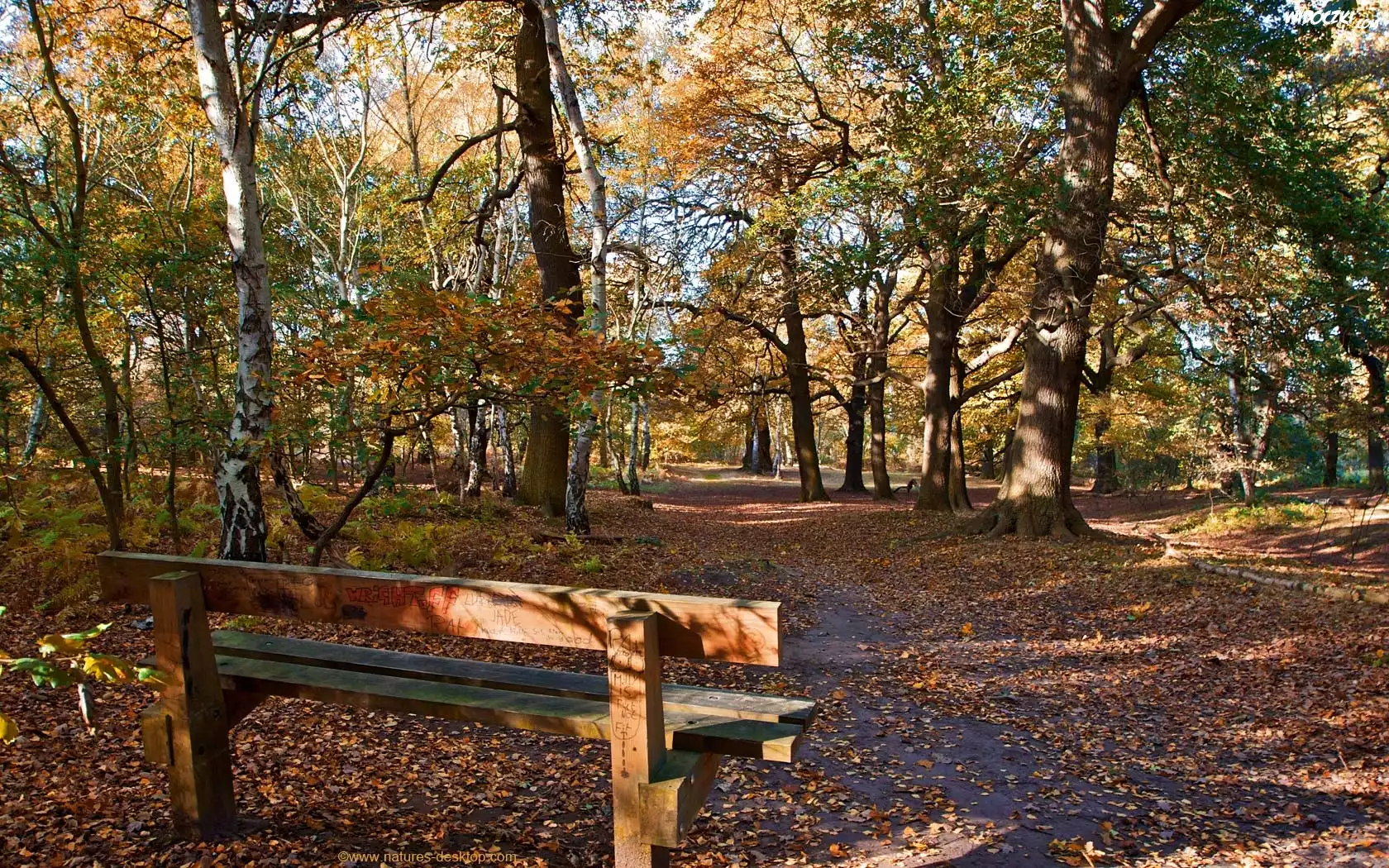 Zdjęcia, Jesień, Park, Ławeczka