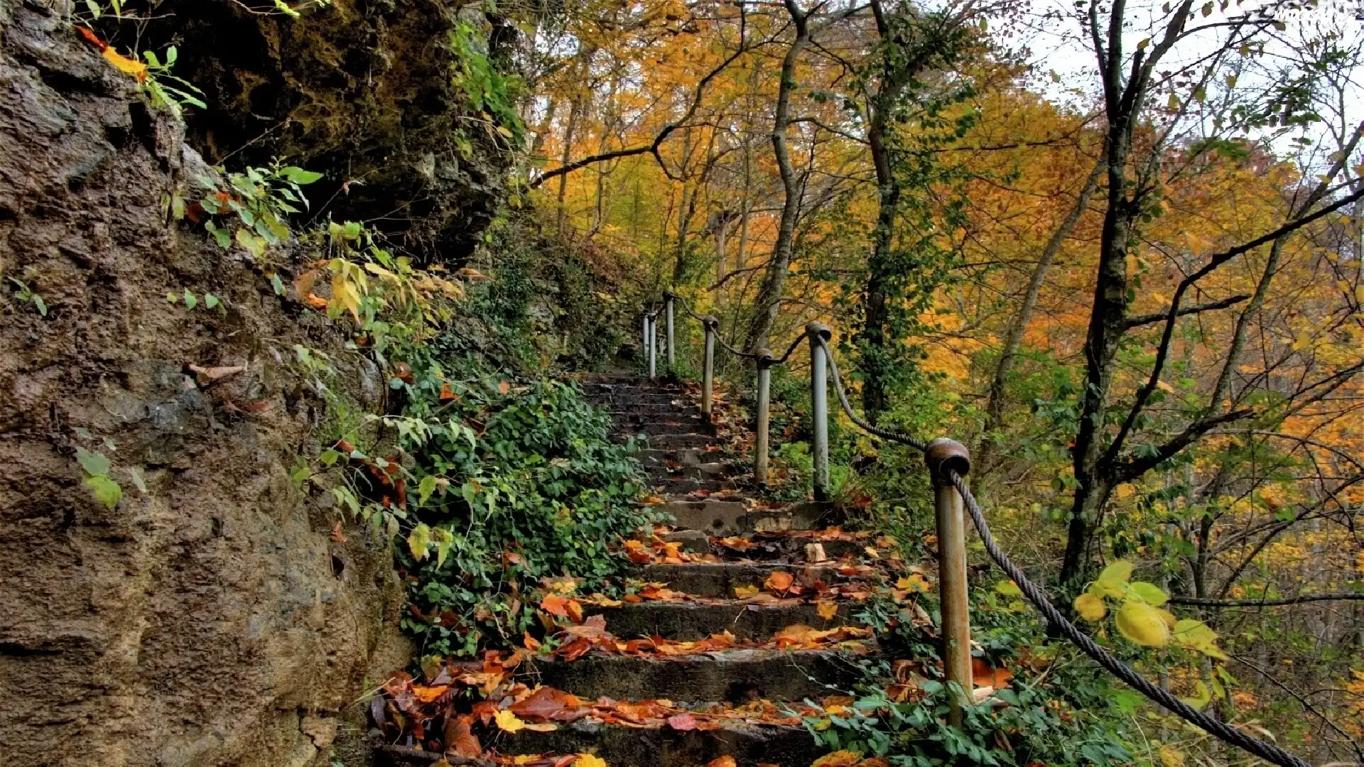Park, Kolorowe, Barwy, Jesieni, Schody