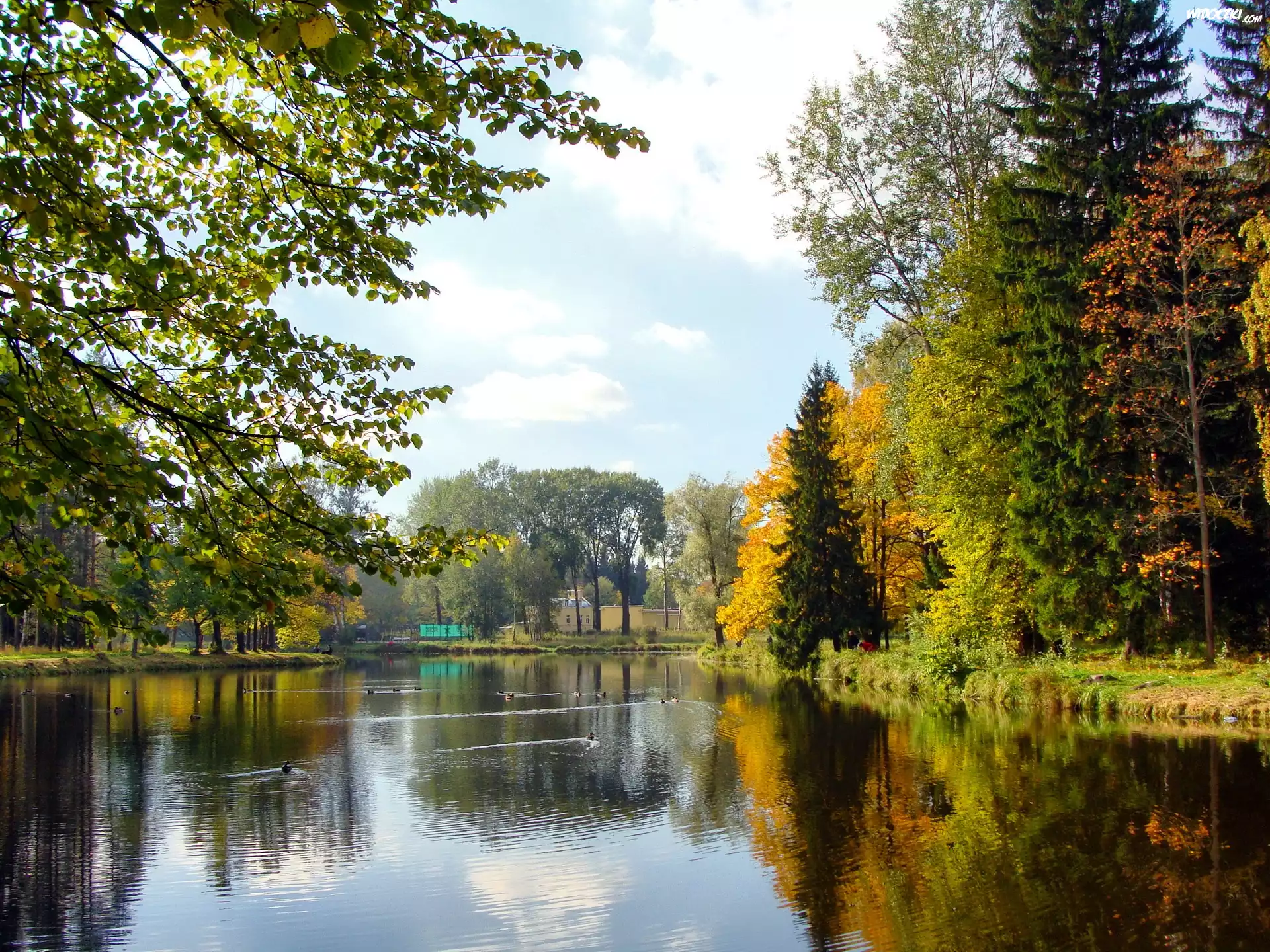 Zdjęcia, Park, Jesień, Jezioro, Drzewa
