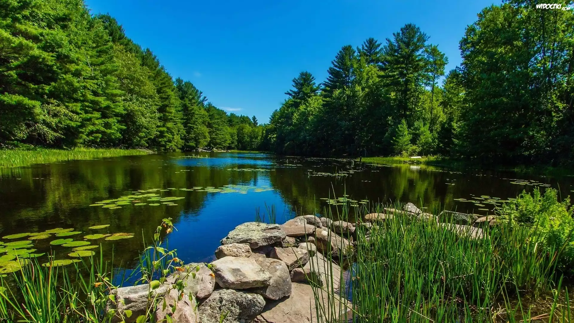 Zdjęcia, Park, Staw, Kamienie, Drzewa