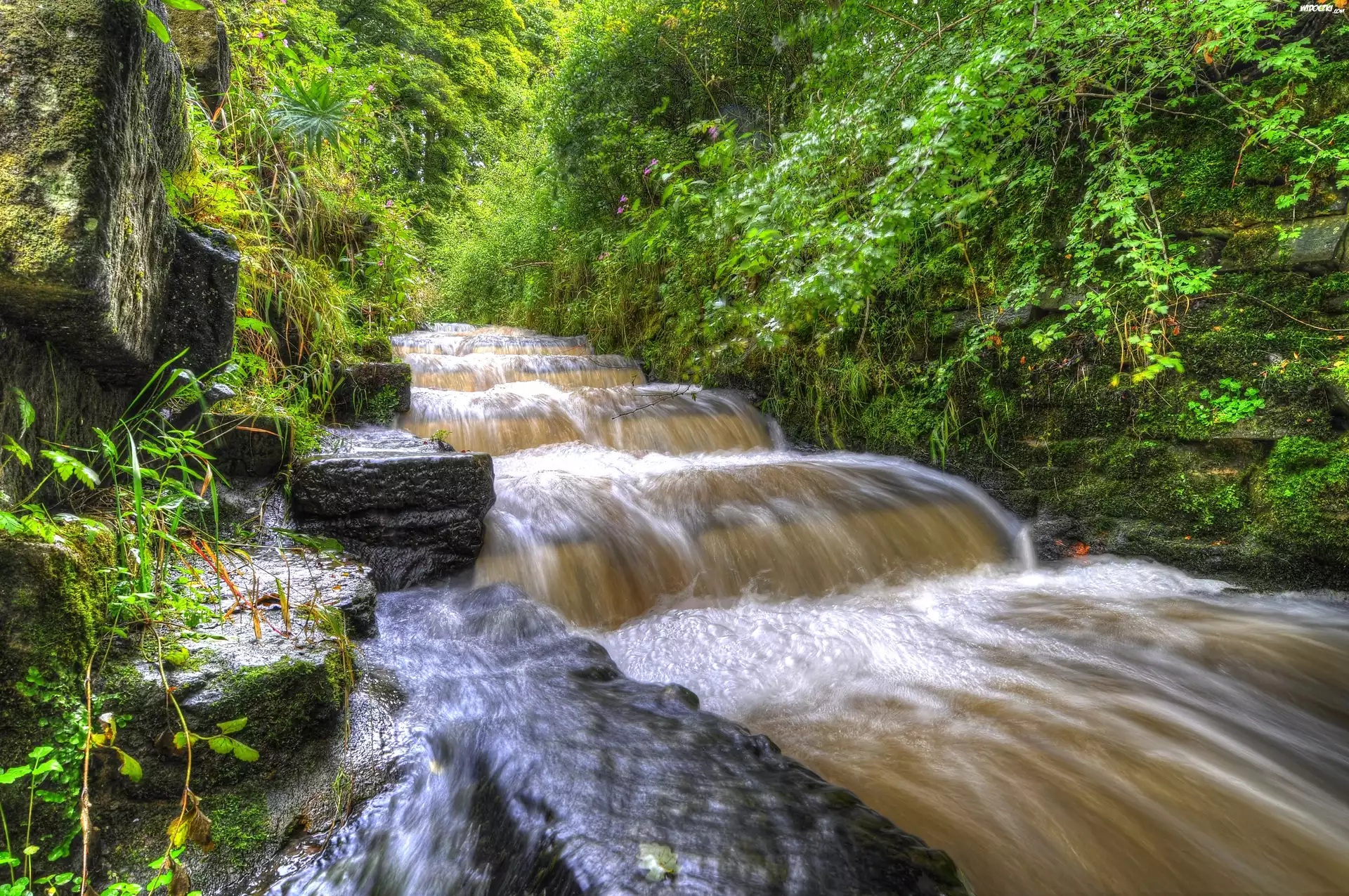 Zdjęcia, Park, Wodospad, Kamienie, Roślinność