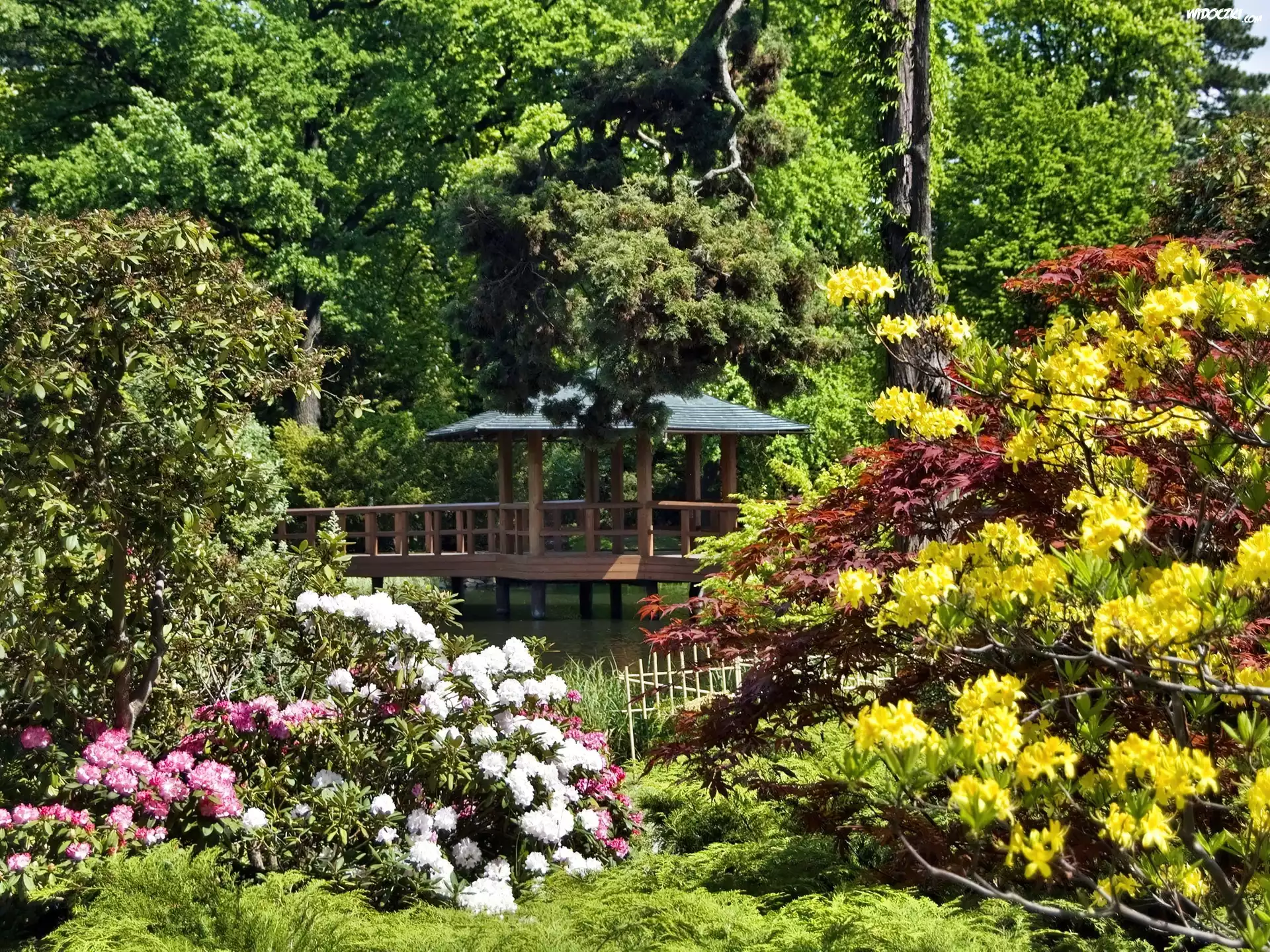 Zdjęcia, Park, Altana, Kolorowe, Rododendrony