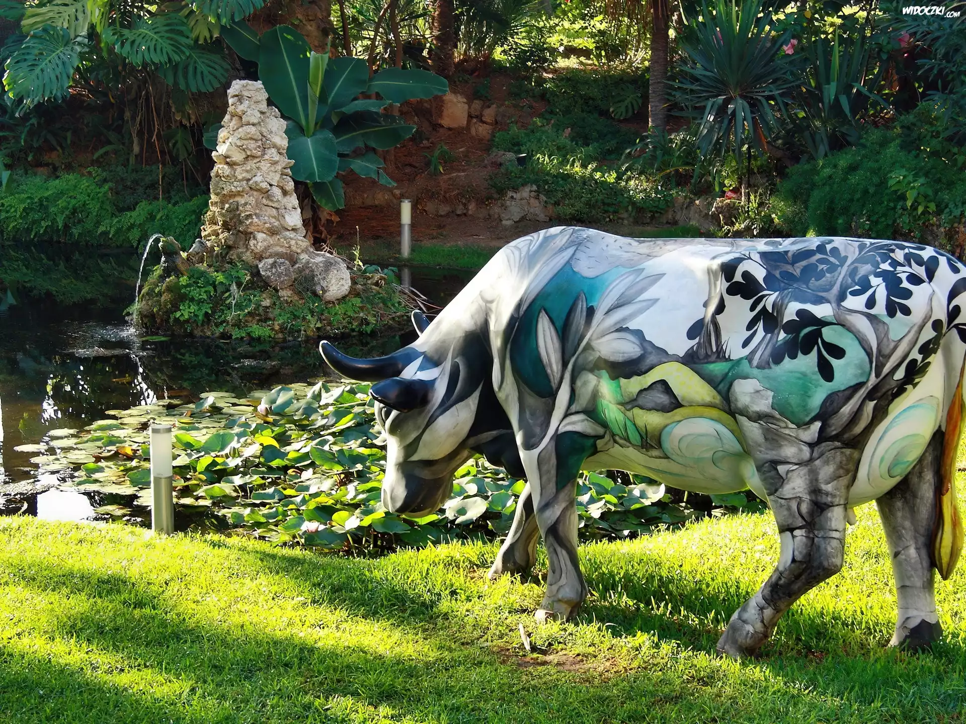 Zdjęcia, Park, Malowana, Krowa, Hiszpania
