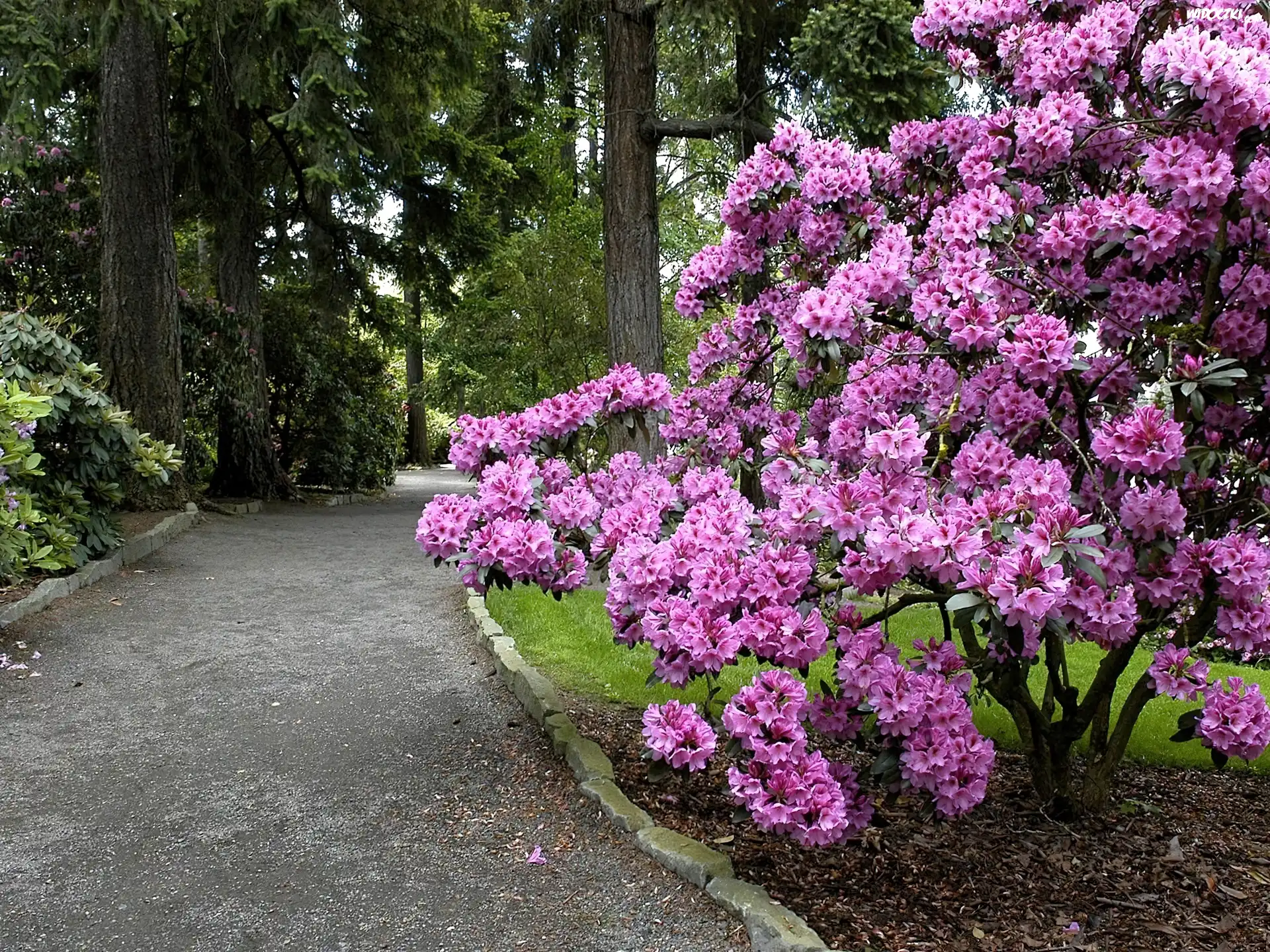 Zdjęcia, Park, Aleja, Krzew, Rododendron