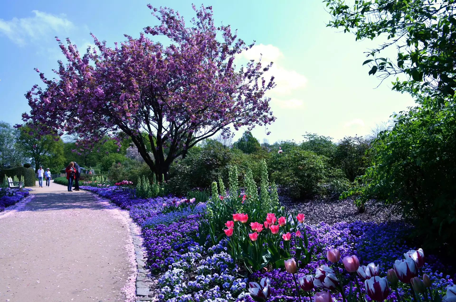 Zdjęcia, Park, Alejka, Kwiaty, Wiosna