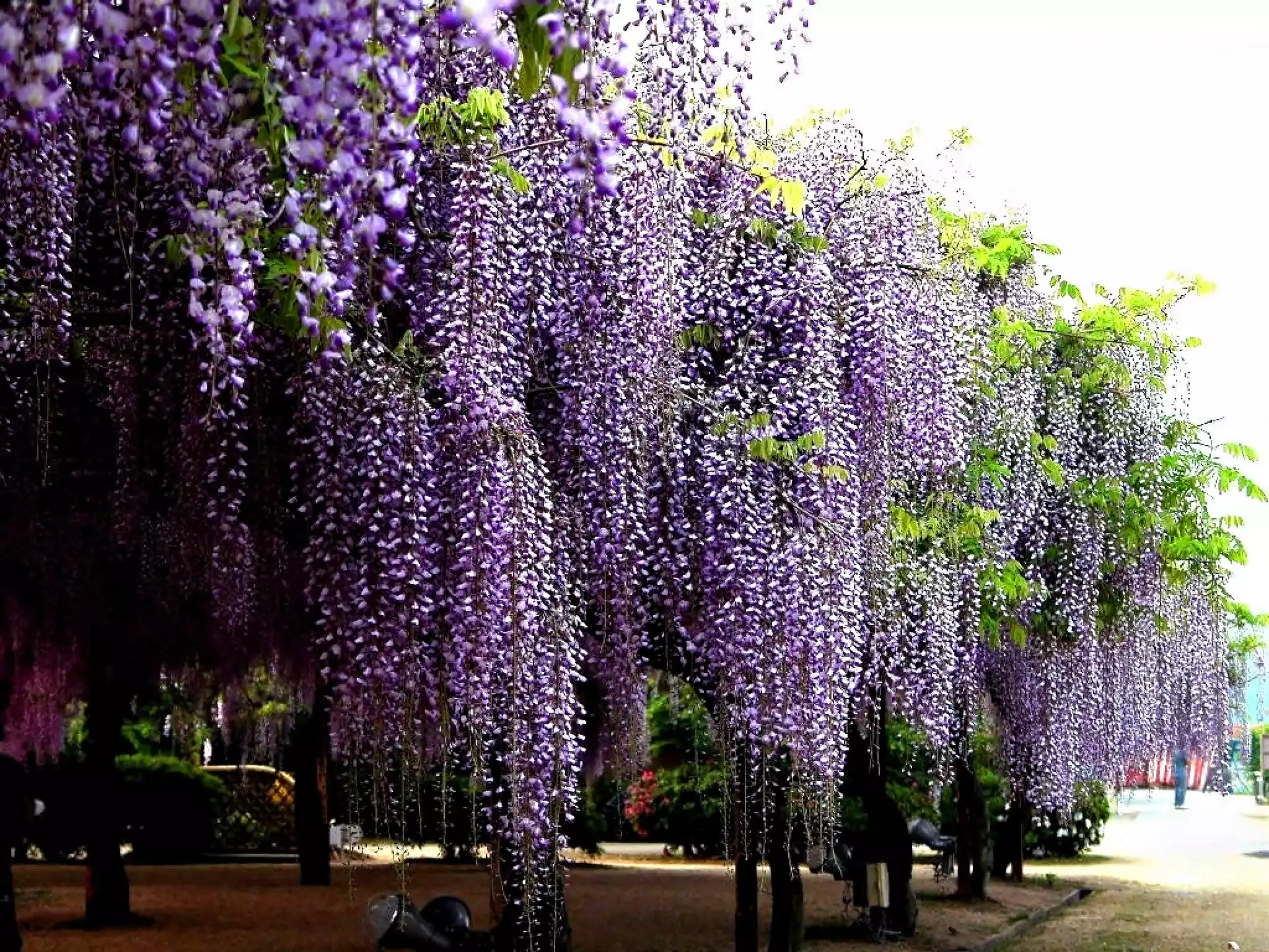 Drzewa, Glicynia, Fioletowe, Kwiaty, Park
