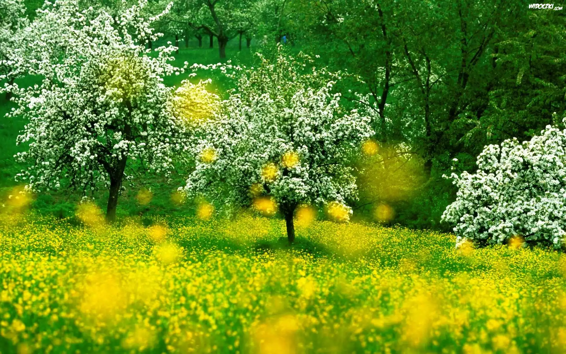 Zdjęcia, Park, Łąka, Kwitnące, Drzewa