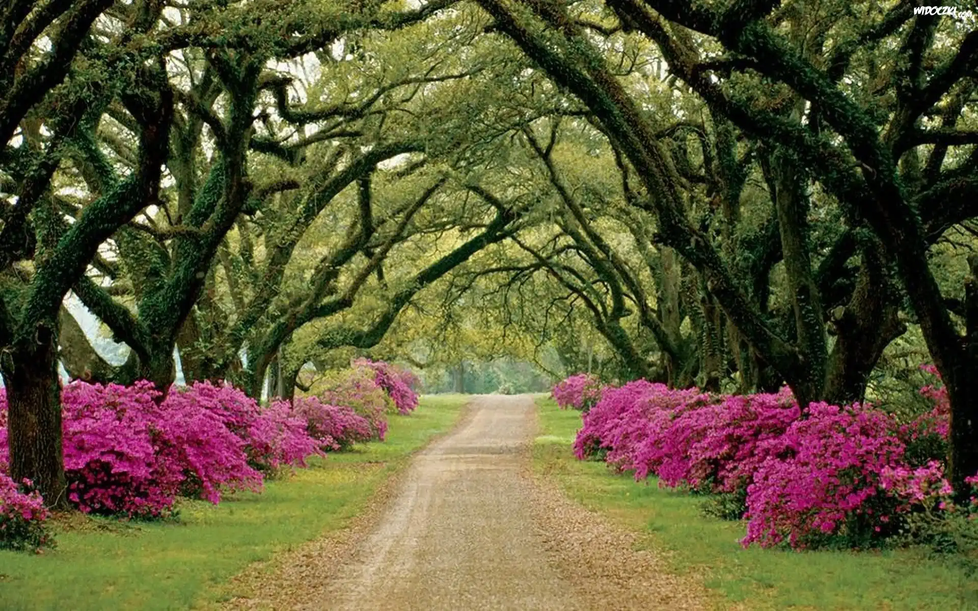 Zdjęcia, Park, Aleja, Kwitnące, Rododendrony