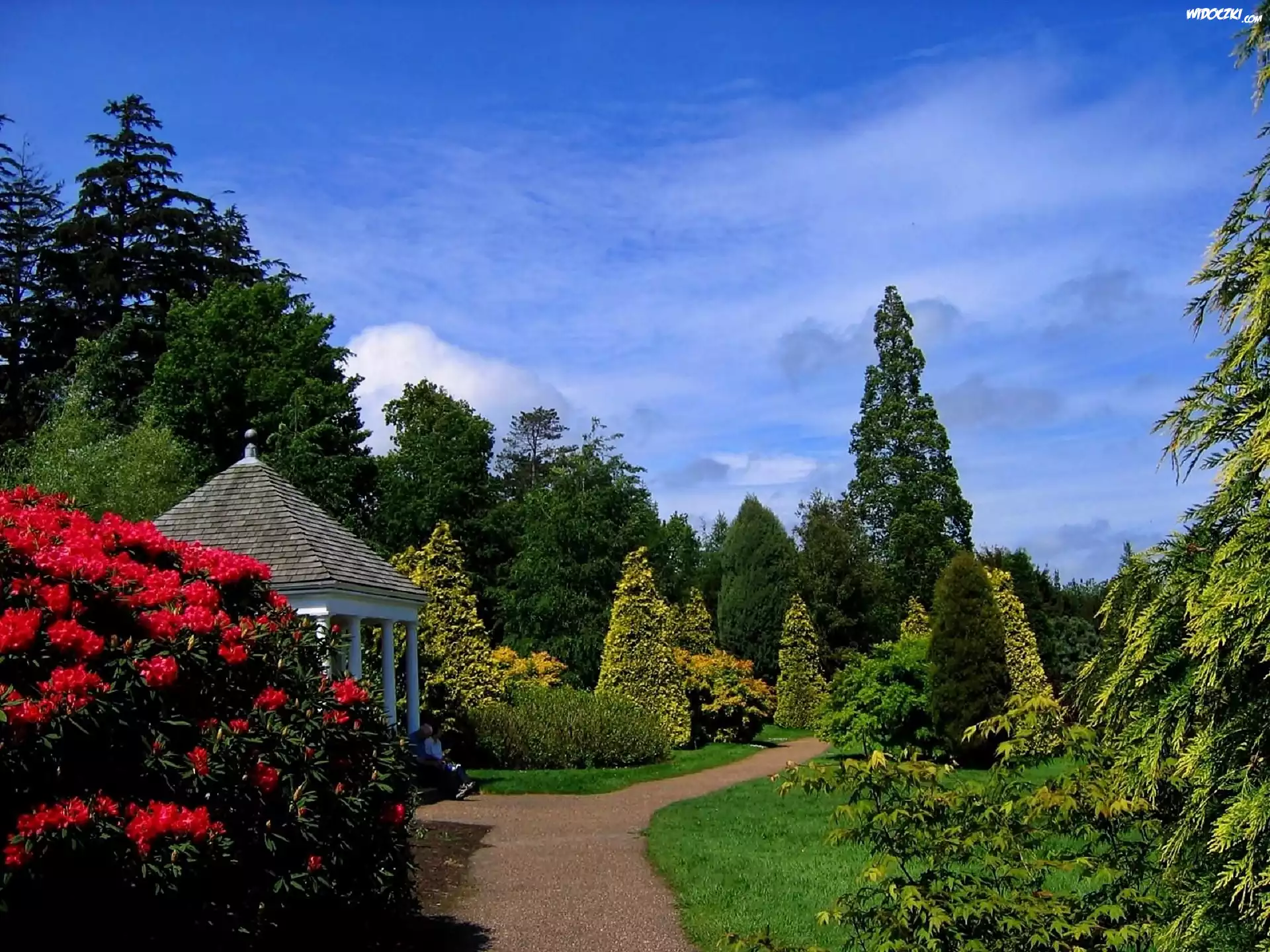 Zdjęcia, Park, Altanka, Kwitnące, Rododendrony