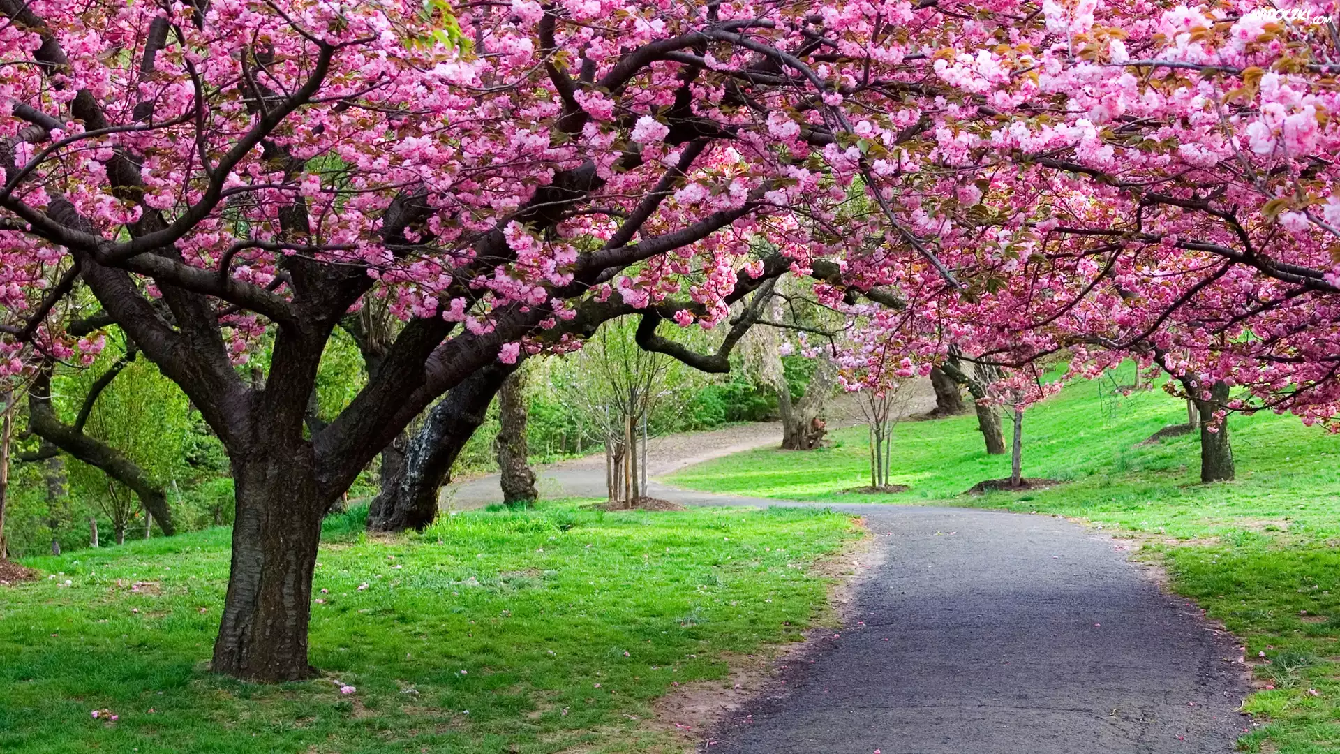 Zdjęcia, Park, Droga, Kwitnące, Drzewa