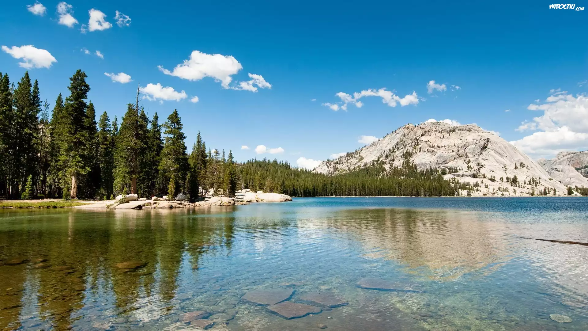 Zdjęcia, Kalifornia, Park Narodowy Yosemite, Jezioro Tenaya, Góry, Las