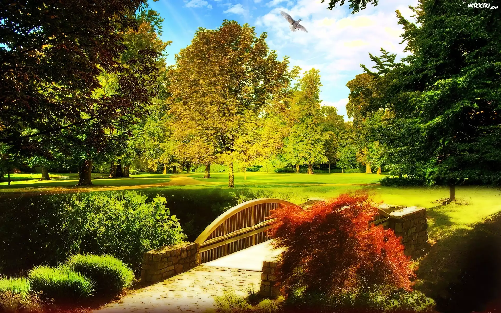 Zdjęcia, Park, Mostek, Lecący, Gołąb