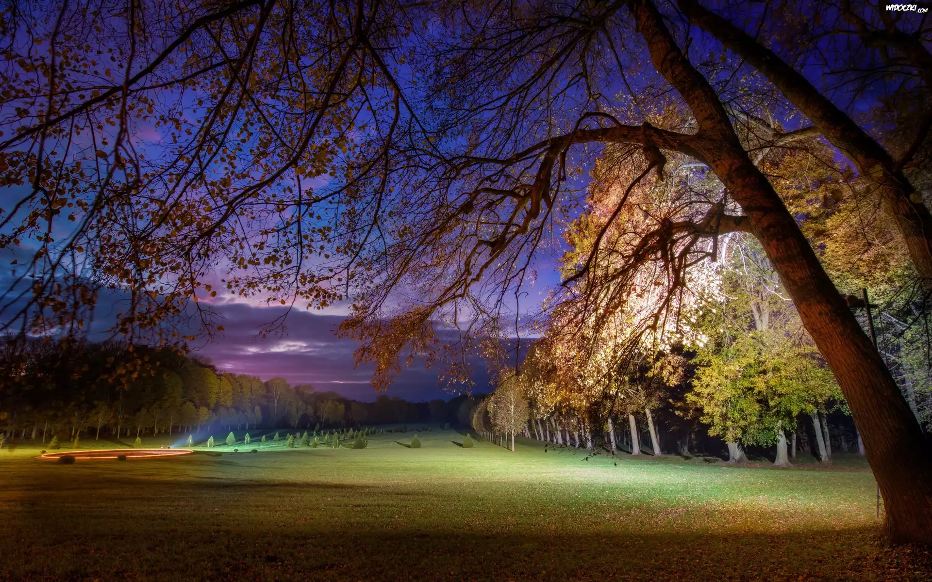 Zdjęcia, Park, Łąka, Drzewa, Światło, Liście, Jesień