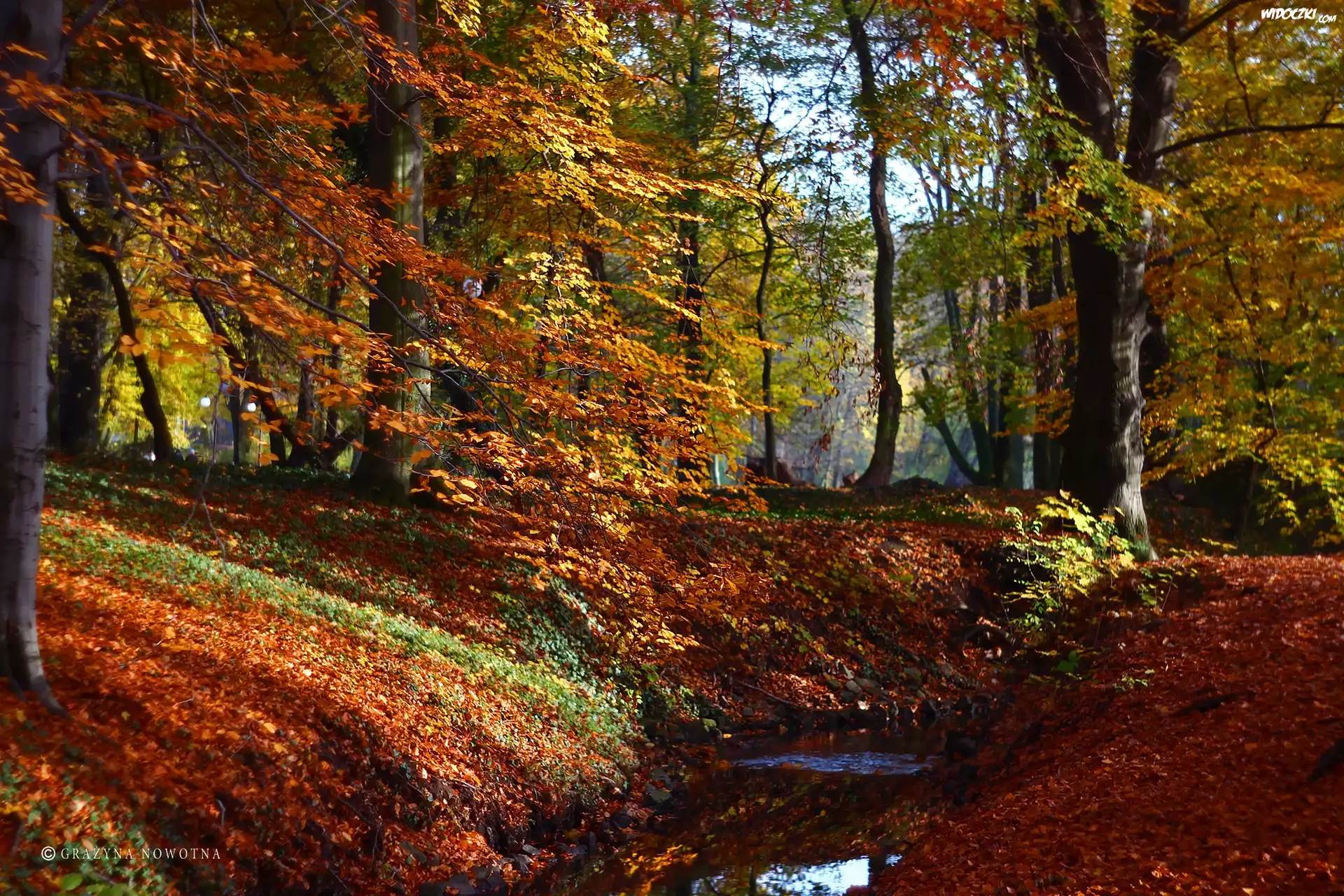 Zdjęcia, Park, Jesień, Kolorowe, Liście, Drzewa