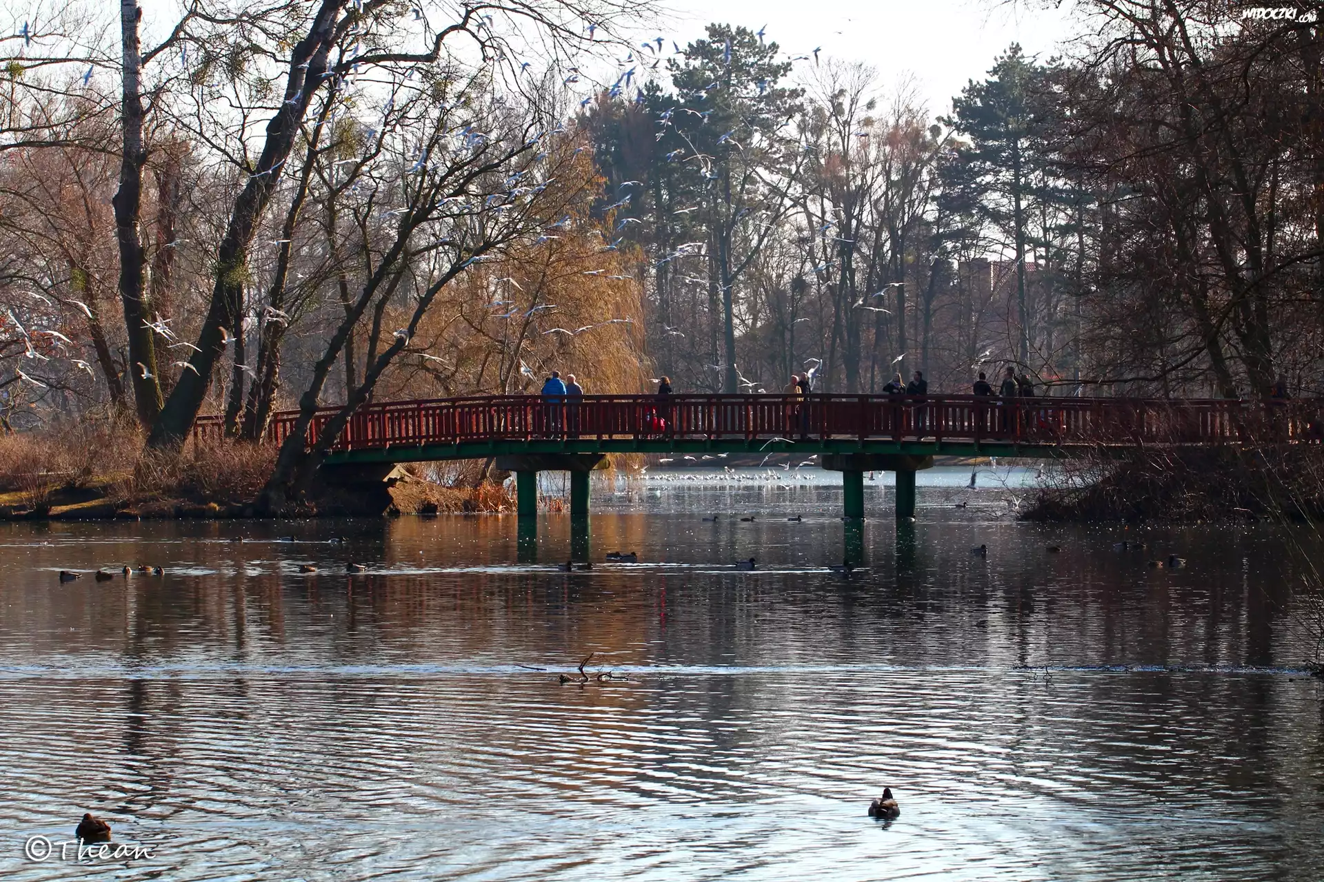 Zdj臋cia, Park, Jezioro, Most, Mewy