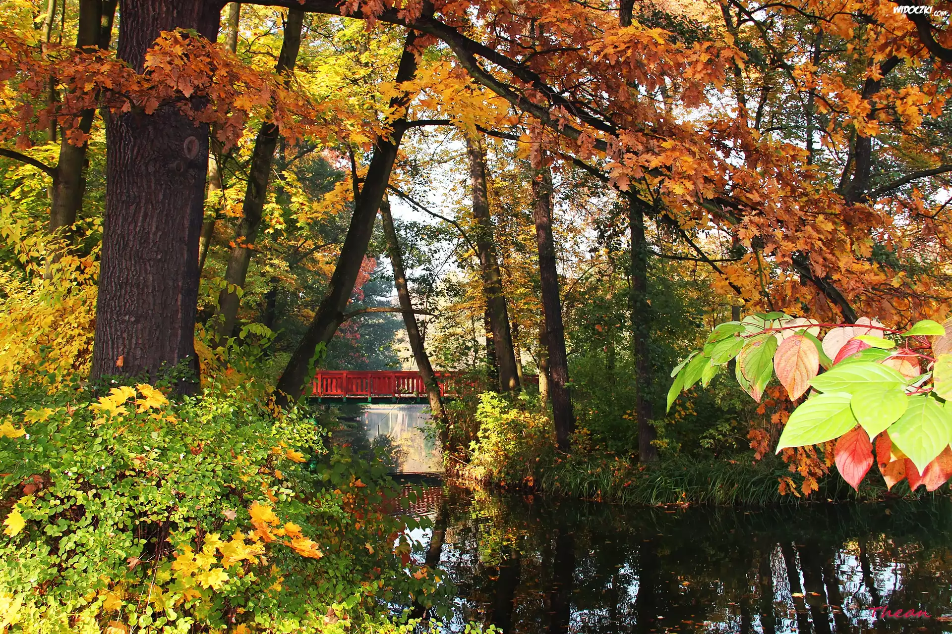 Park, Jesień, Kolorowe, Liście, Most, Jezoro