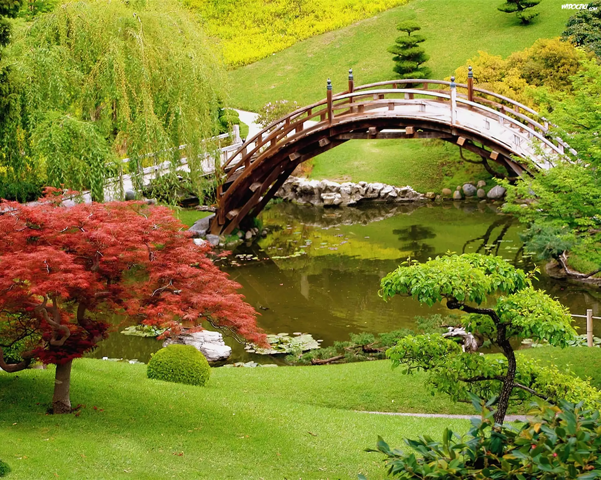 Park, Japoński, Mostek, Staw