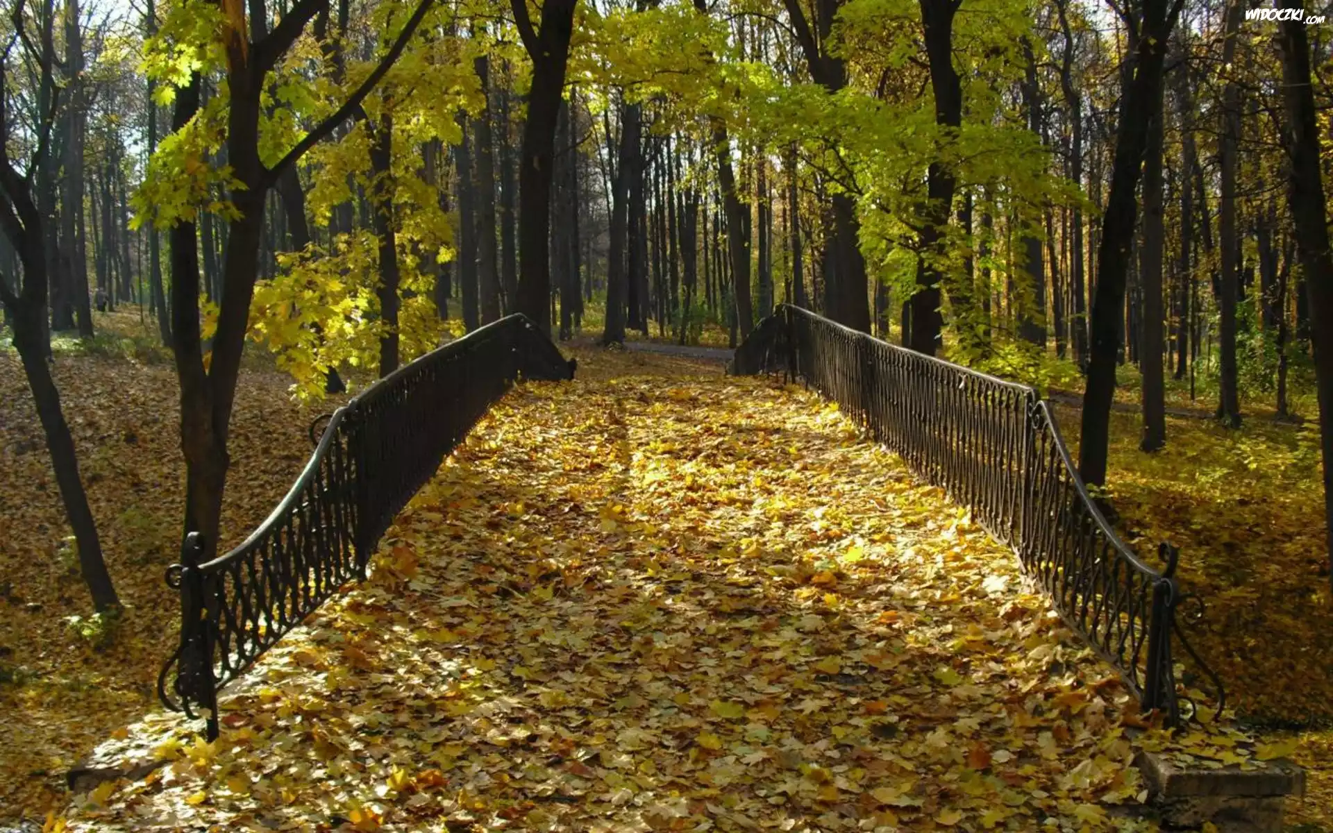 Zdjęcia, Park, Jesień, Mostek, Liście