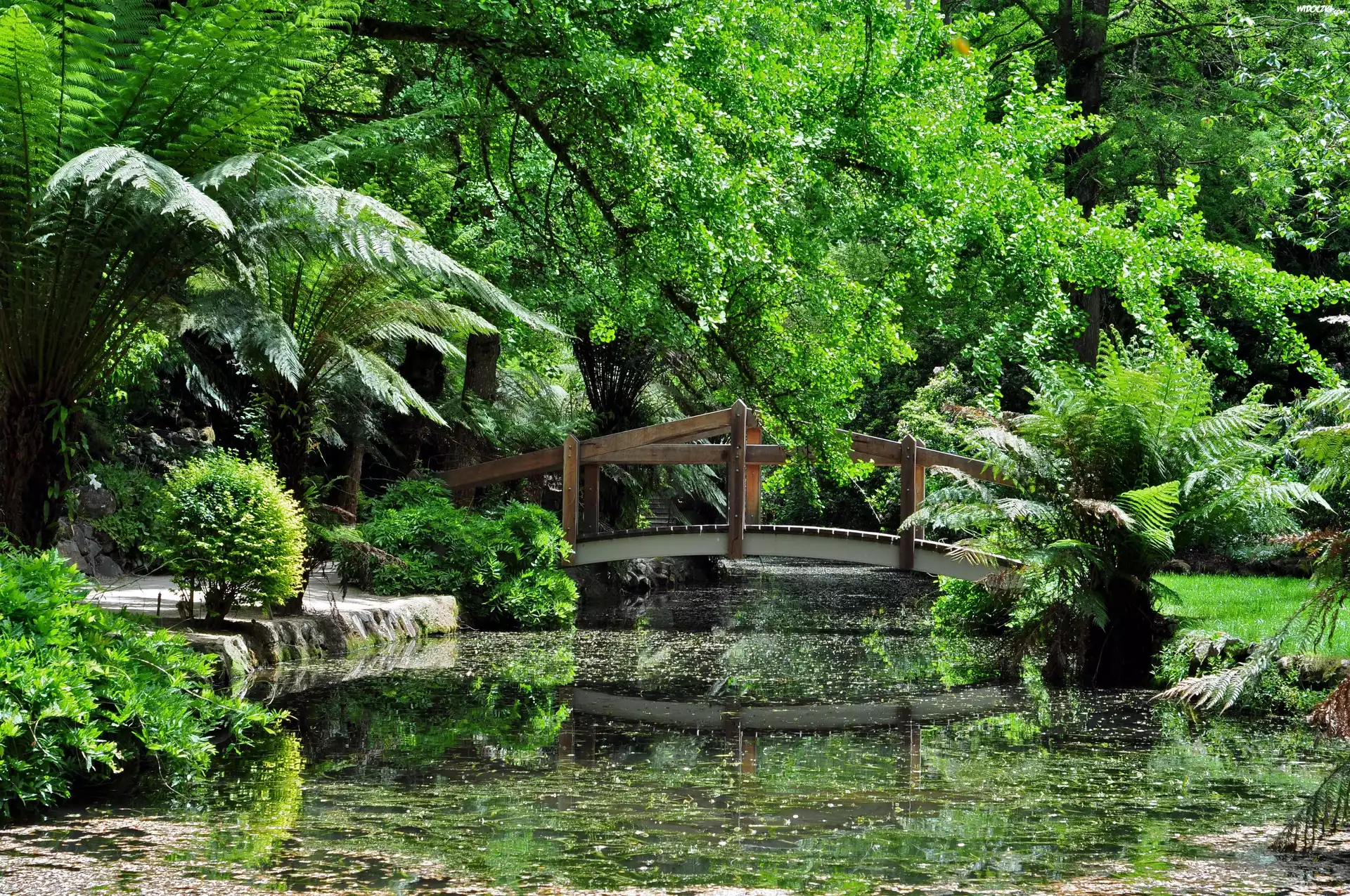 Zdjęcia, Park, Egzotyczny, Staw, Mostek, Palmy