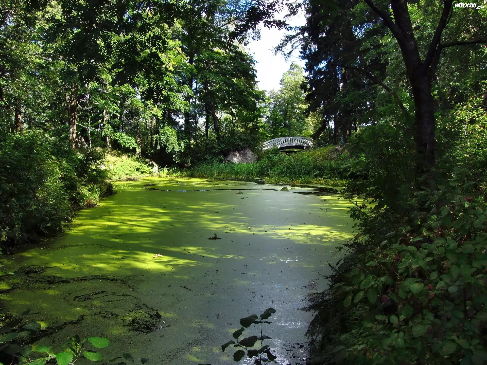 Zdjęcia, Park, Staw, Mostek, Lato