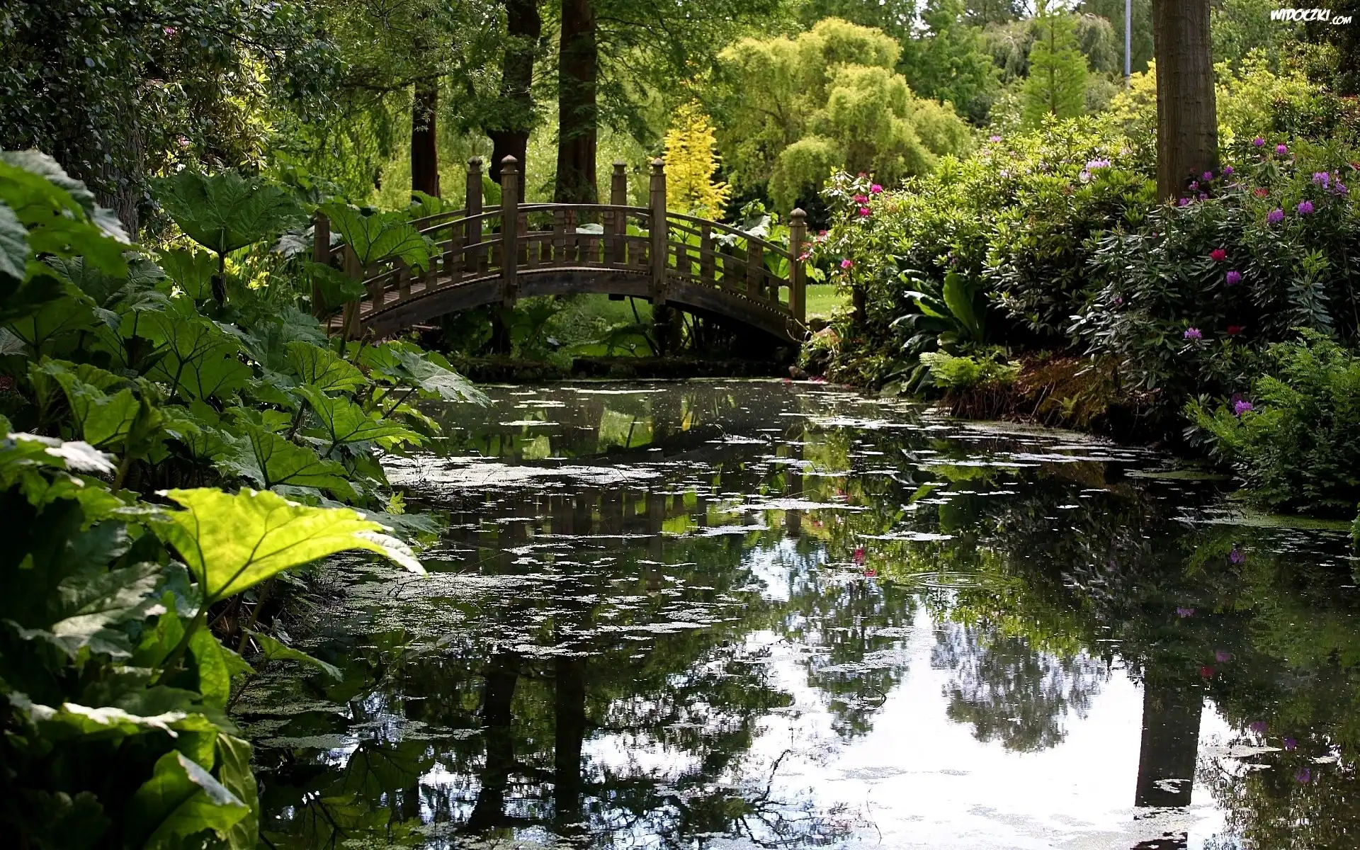 Park, Staw, Mostek, Rośliny