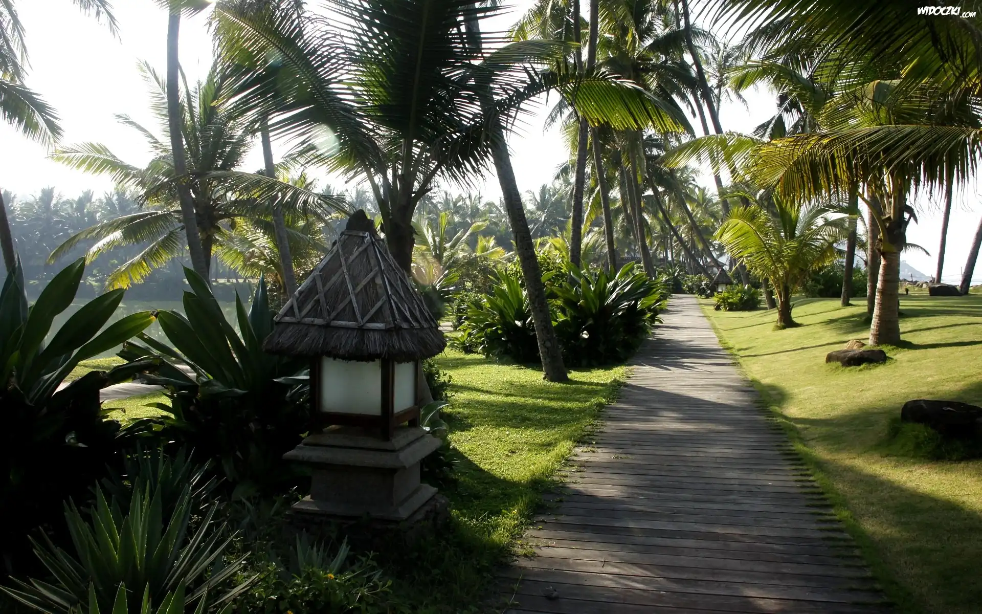 Zdjęcia, Park, Aleja, Lampy, Palmy, Indie