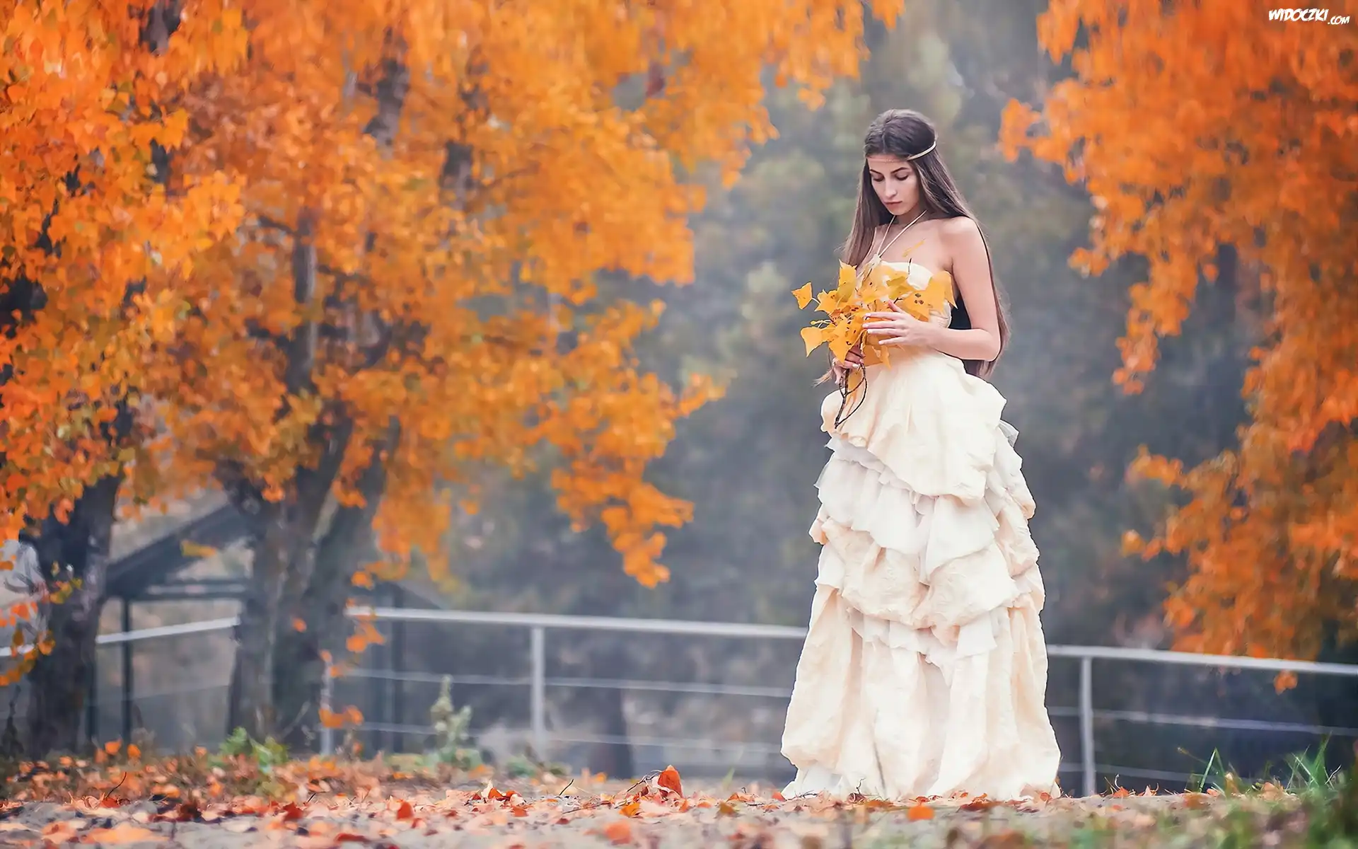Park, Jesień, Liście, Kobieta, Panna, Młoda