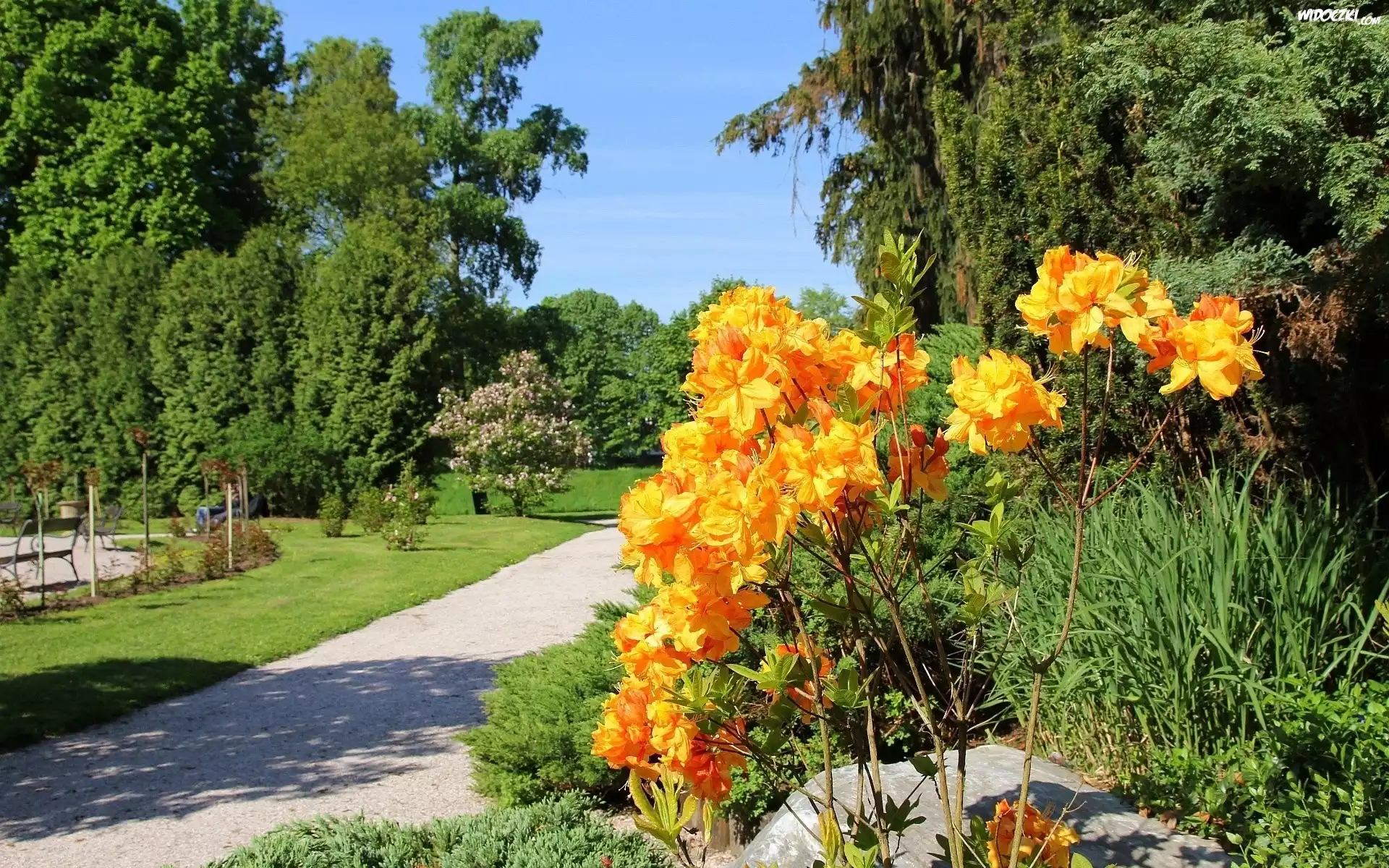 Zdjęcia, Park, Latem, Pomarańczowe, Kwiaty