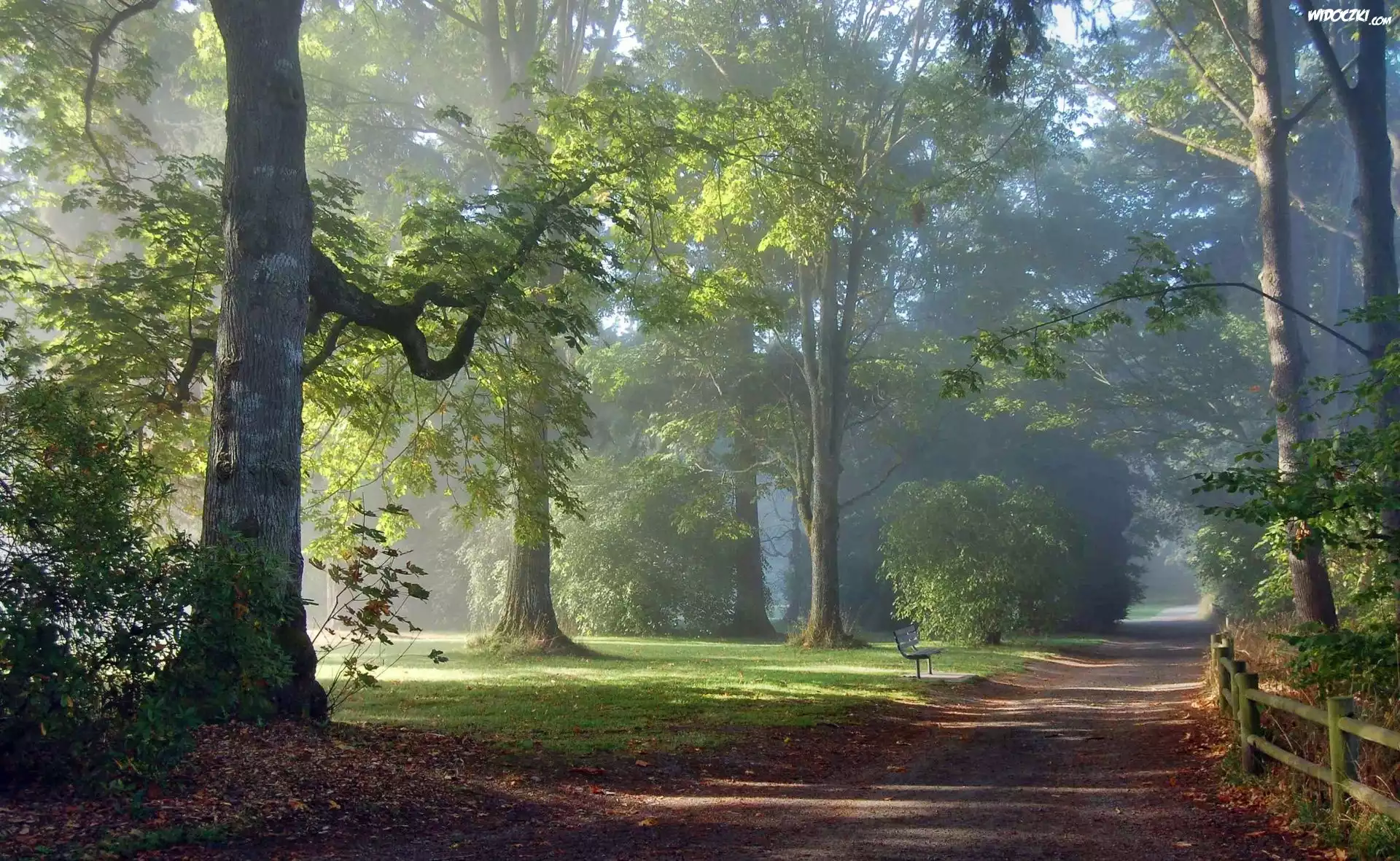 Zdjęcia, Park, Aleja, Poranek, Mgła