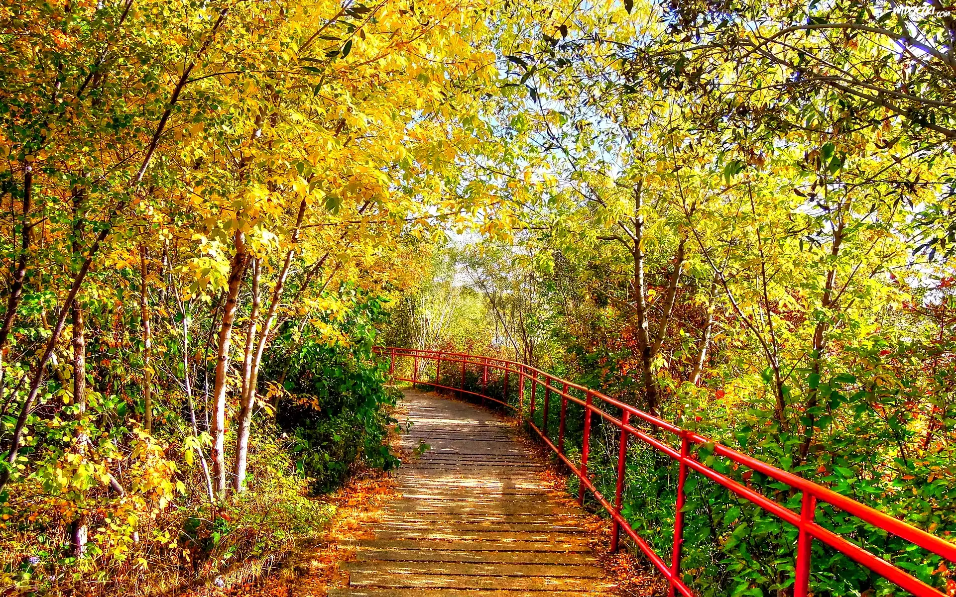 Zdjęcia, Park, Droga, Czerwona, Poręcz, Jesień
