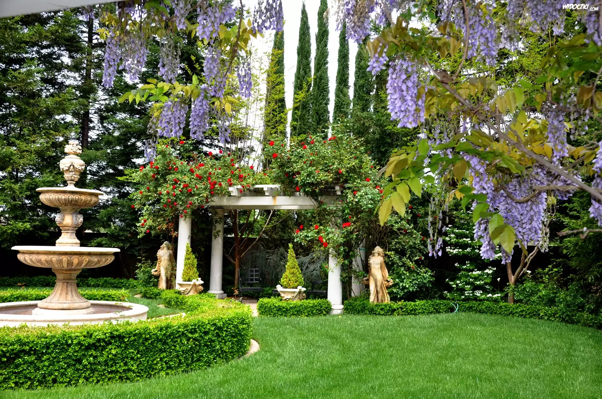Zdjęcia, Park, Ogród, Fontanna, Posągi, Lato