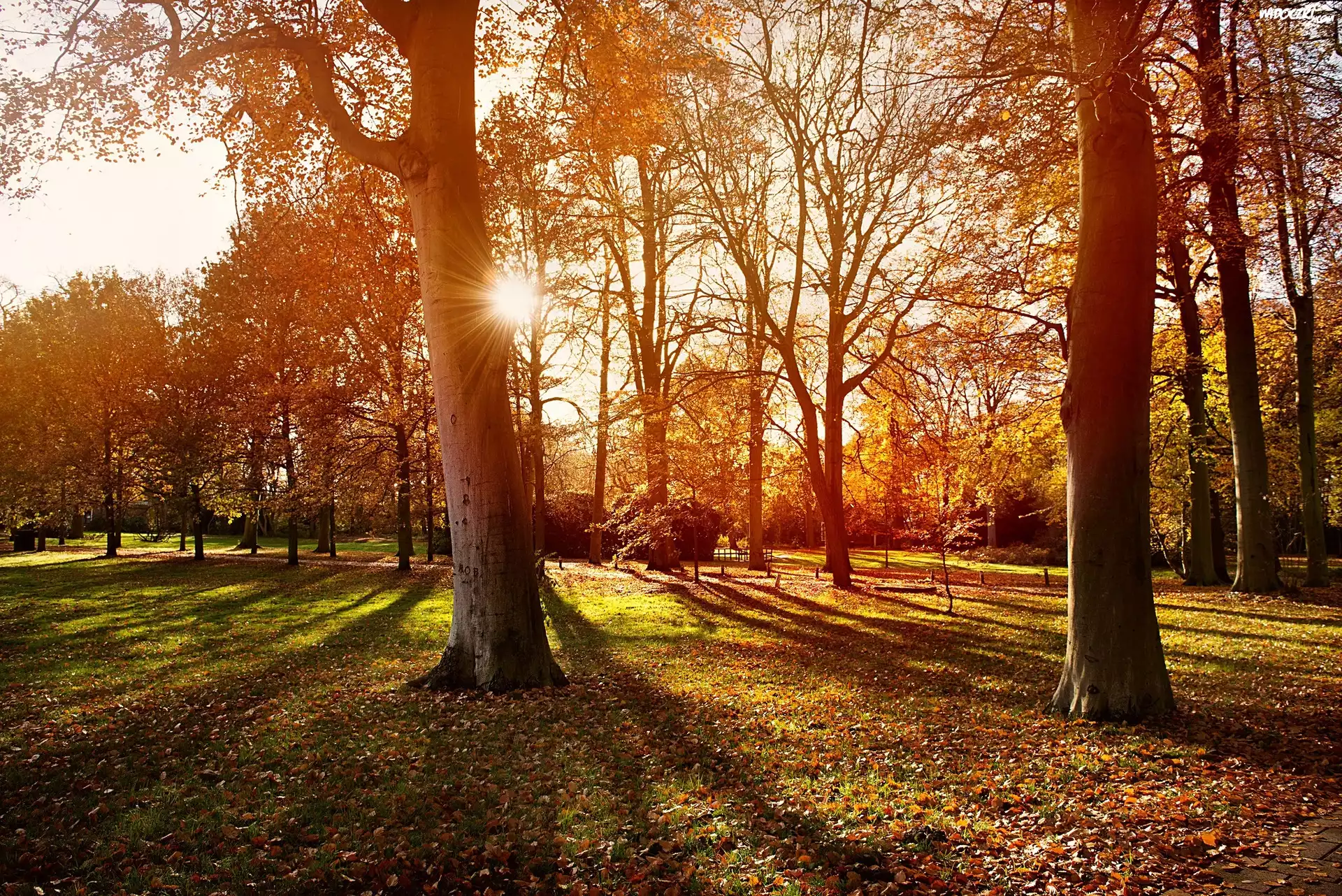 Zdjęcia, Park, Jesień, Promienie, Słońca