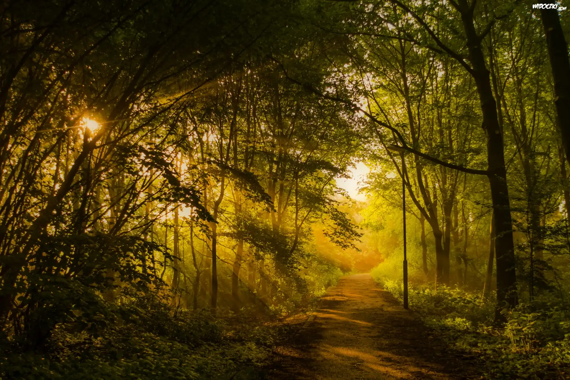 Zdjęcia, Park, Aleja, Latarnia, Przebijające, Promienie, Słońca
