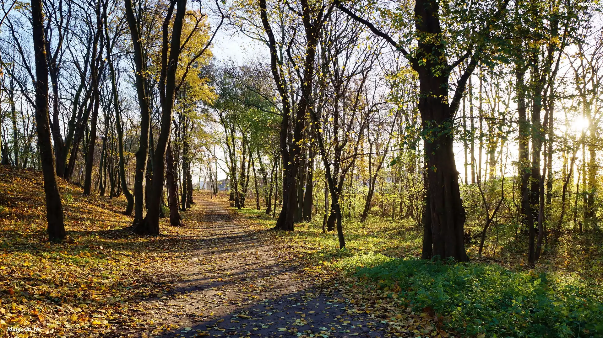 Zdjęcia, Park, Droga, Drzewa, Jesień, Przebijające Światło