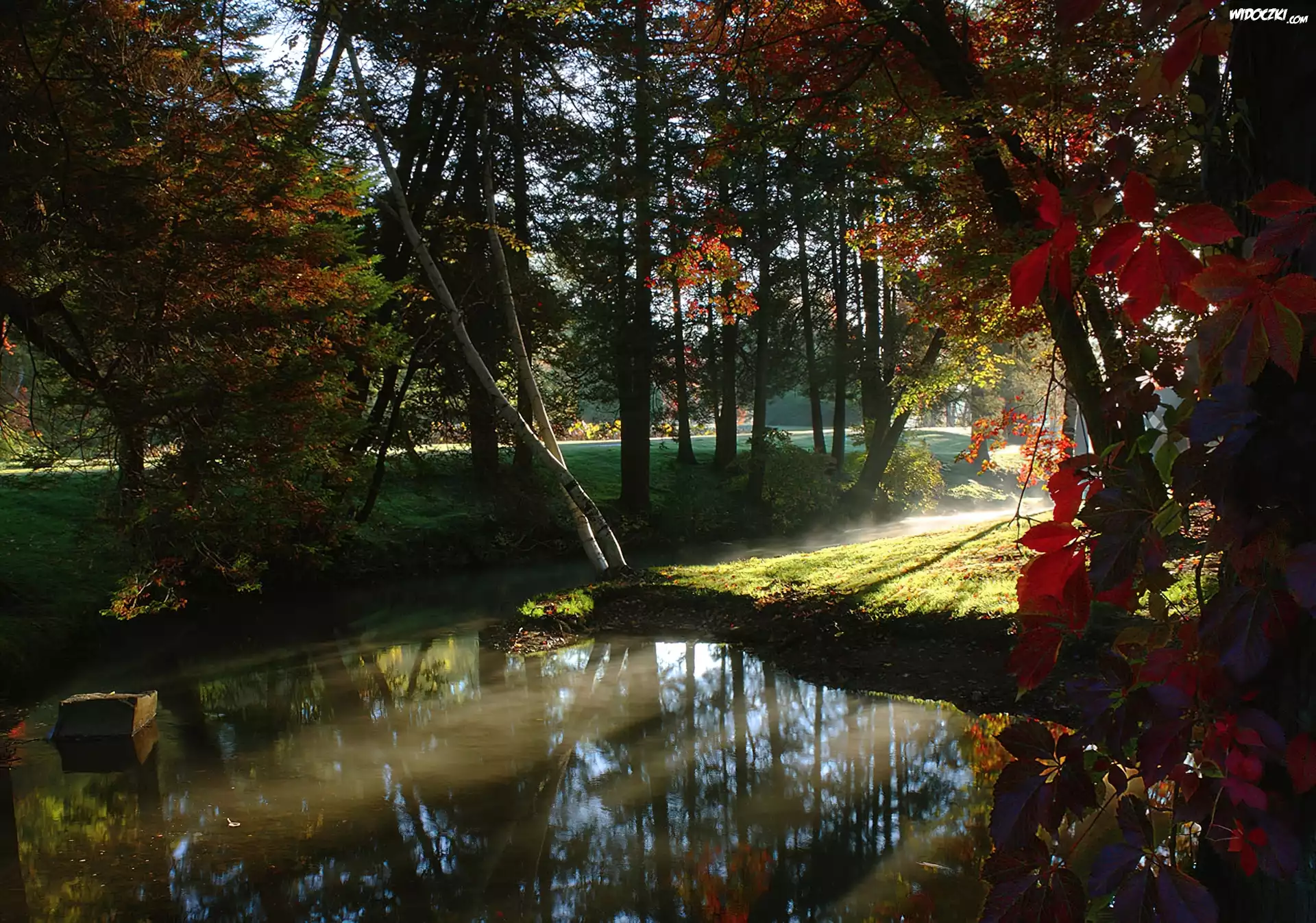 Zdjęcia, Park, Drzewa, Przebijające, Światło