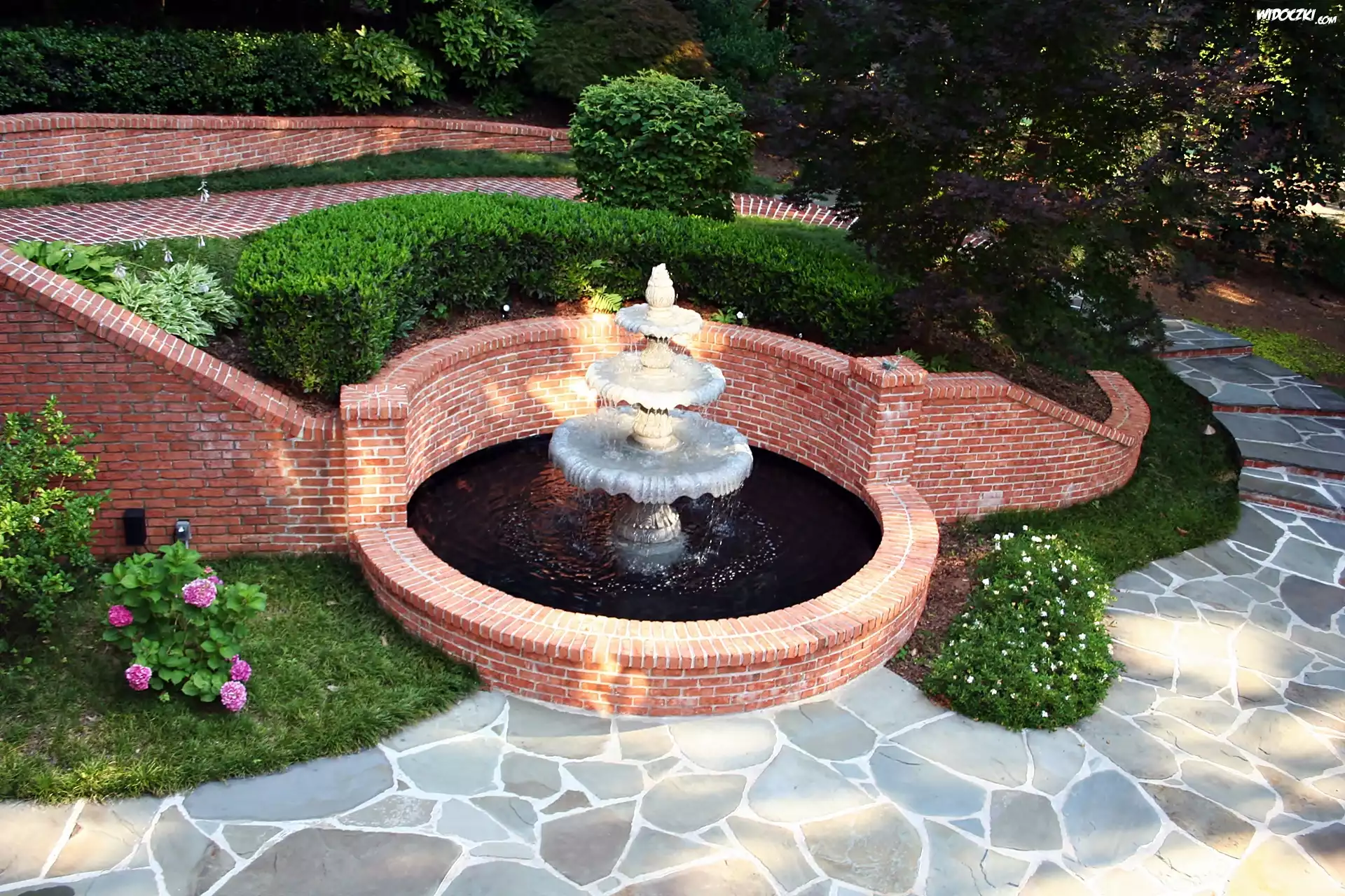 Zdjęcia, Park, Fontanna, Przebijające, Światło