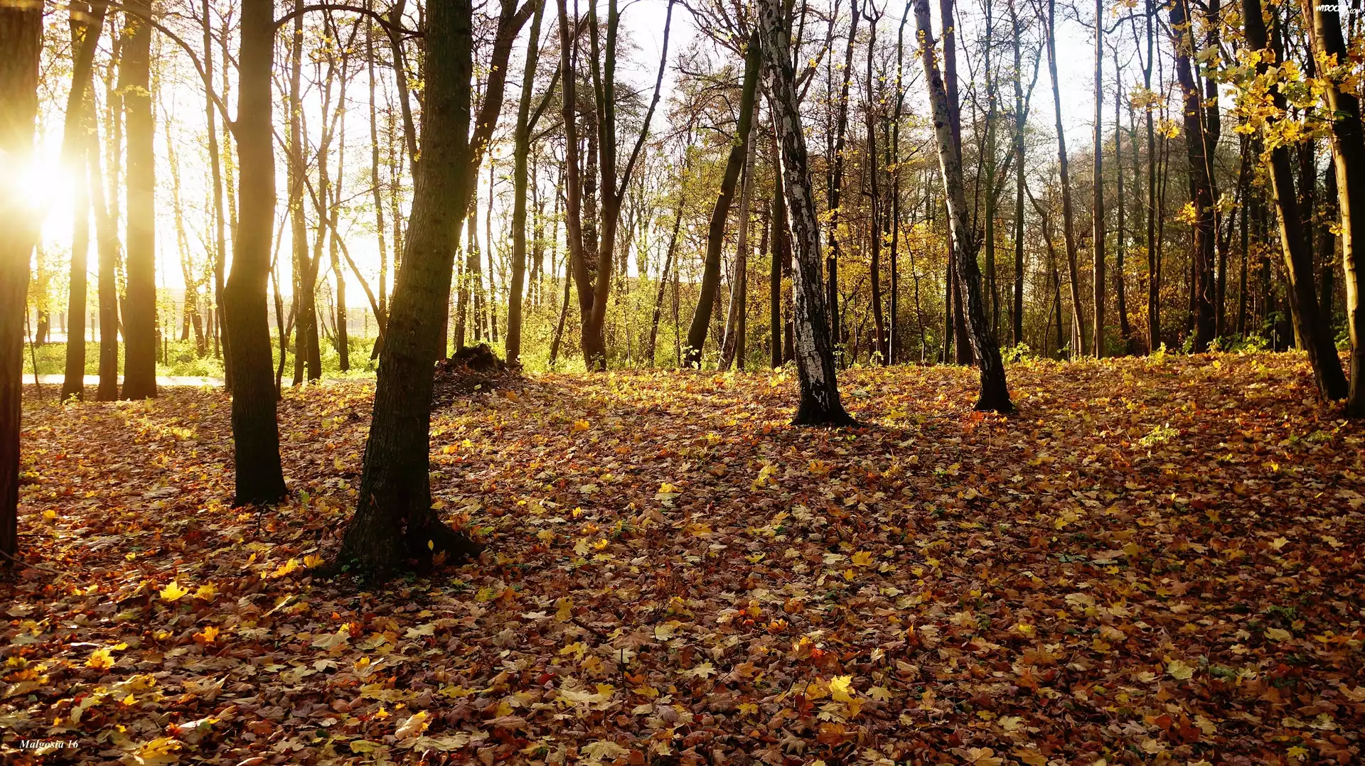 Zdjęcia, Park, Drzewa, Jesień, Przebijające Światło