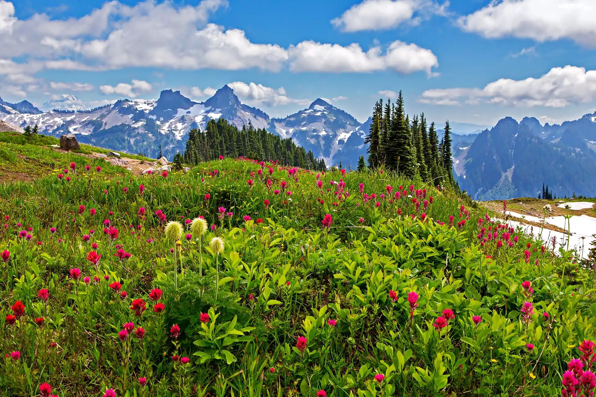 Zdjęcia, Stany Zjednoczone, Stan Waszyngton, Park Narodowy Mount Rainier, Góry, Łąka