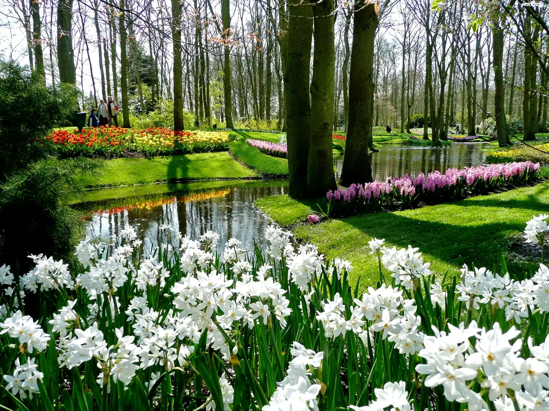 Zdjęcia, Park, Kwiaty, Rzeczka, Wiosna