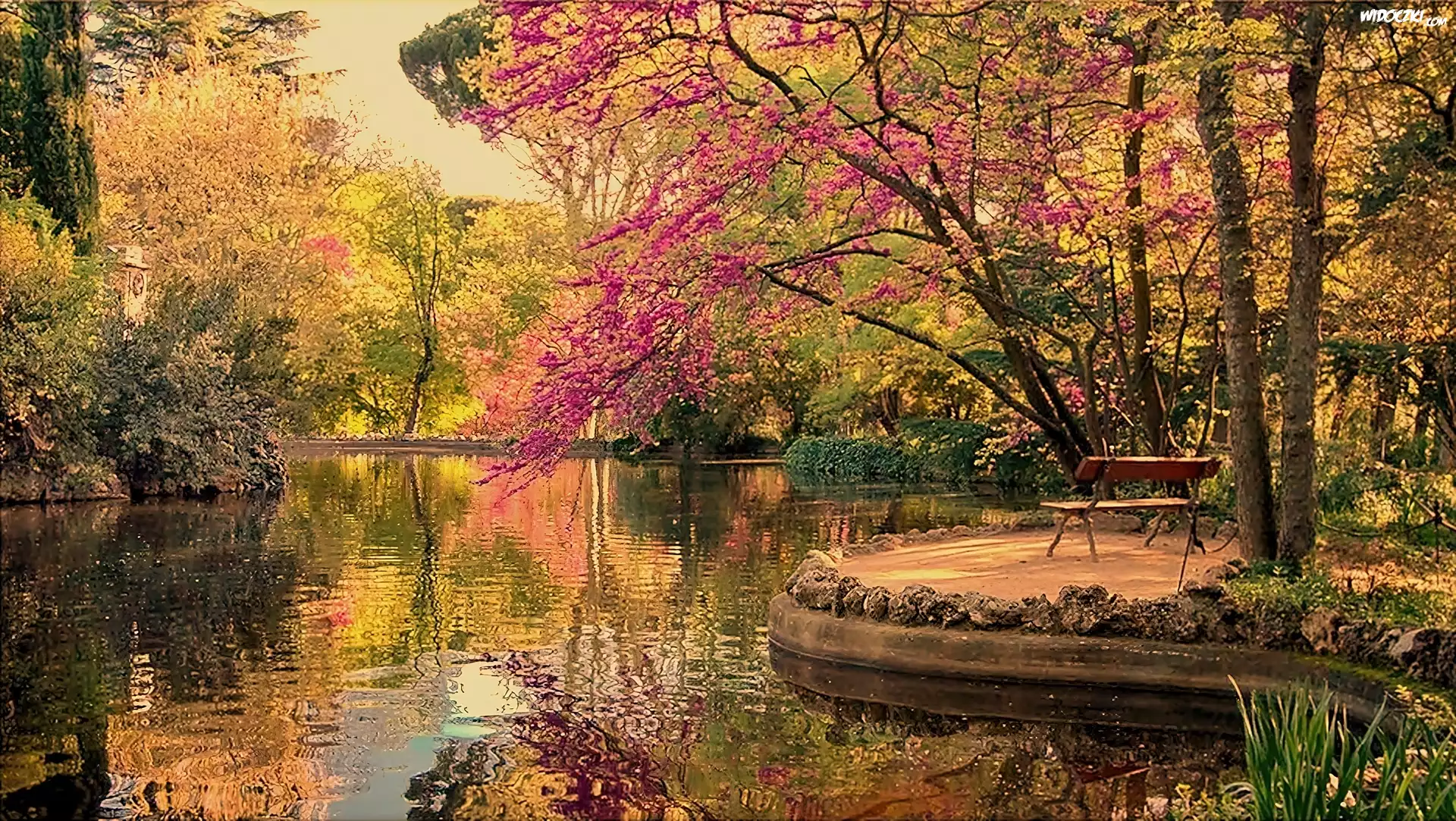 Zdjęcia, Rzeka, Park, Ławeczka