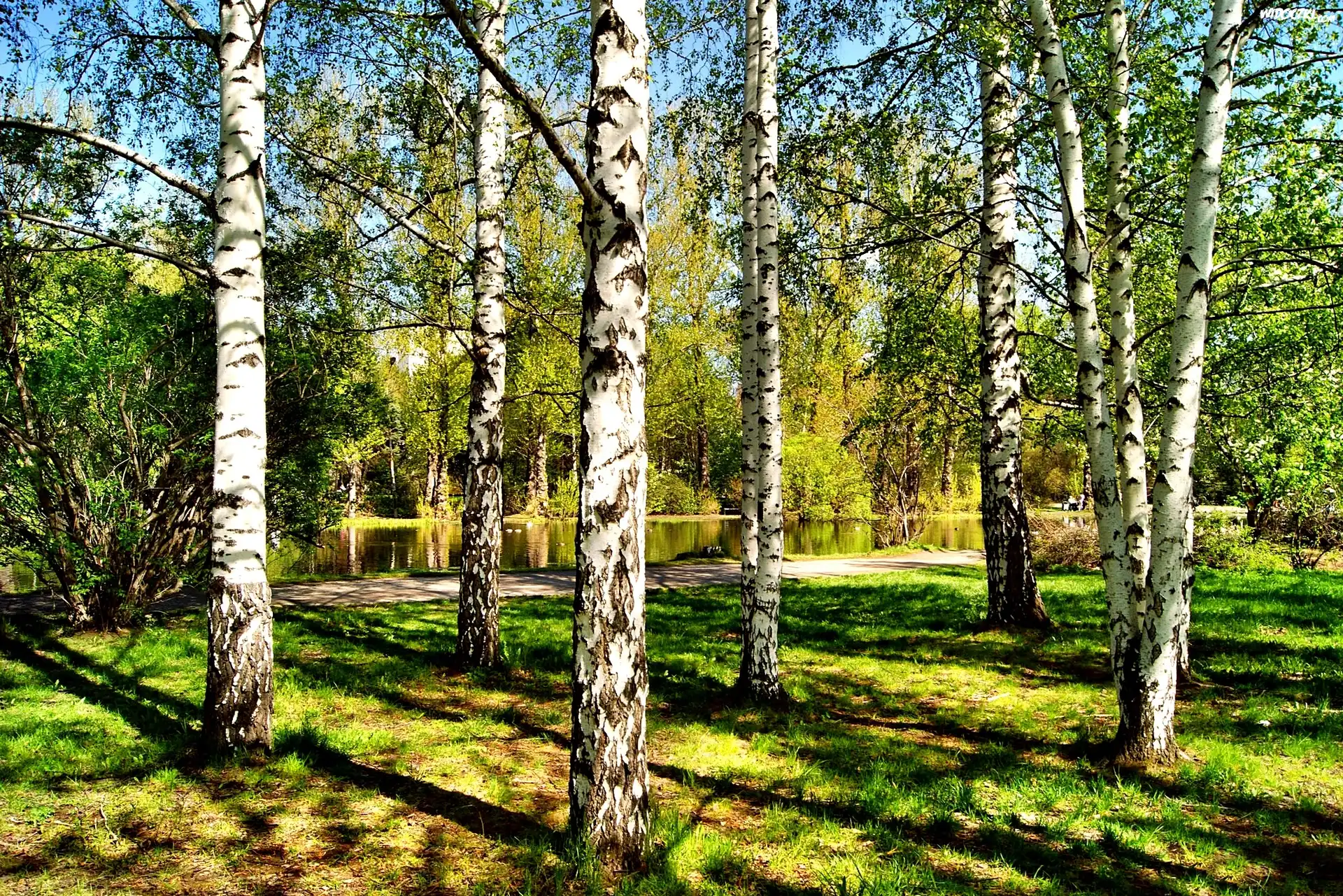 Zdjęcia, Park, Brzozy, Rzeka, Lato