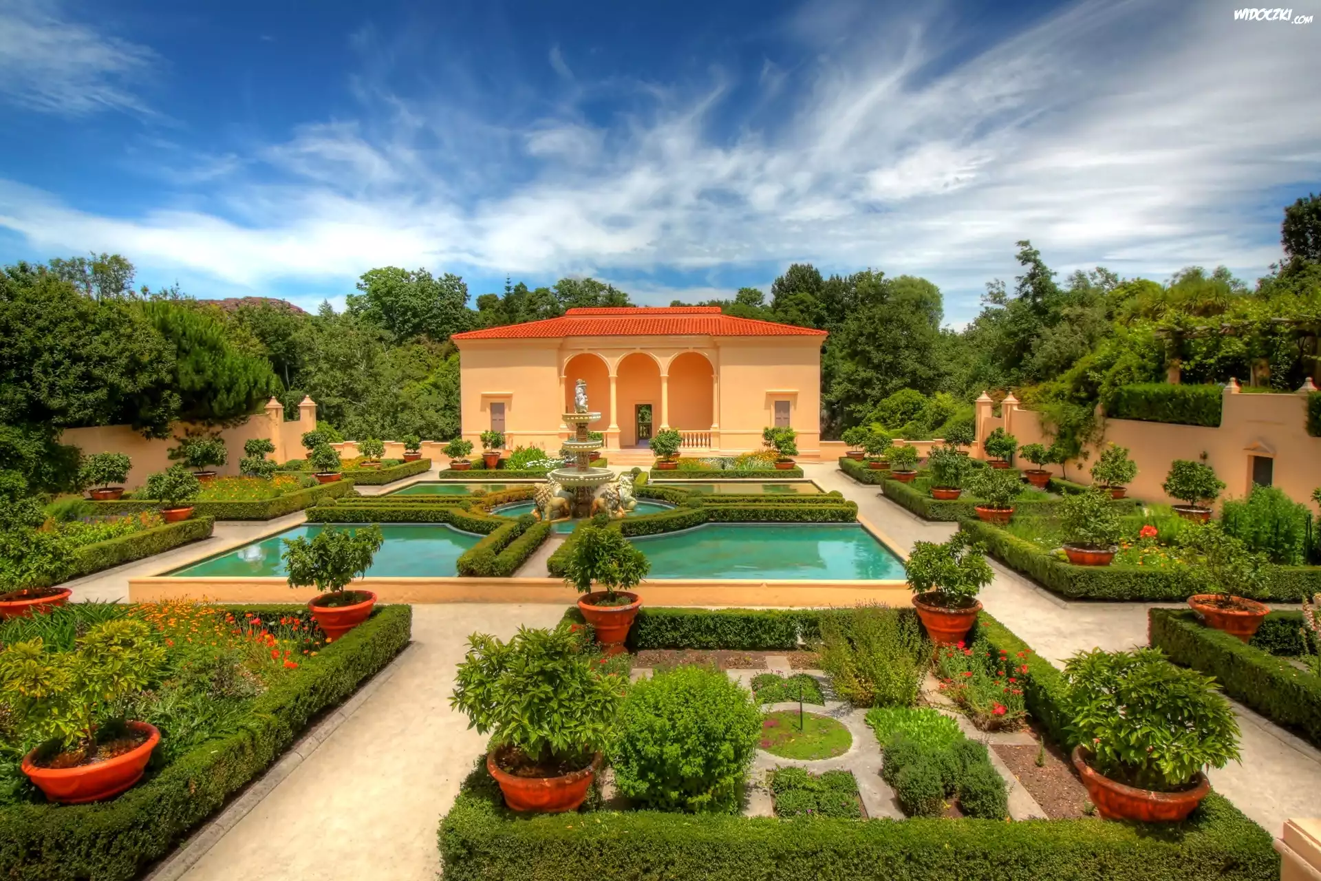 Zdjęcia, Park, Ogród, Klomby, Sadzawka, Pawilon