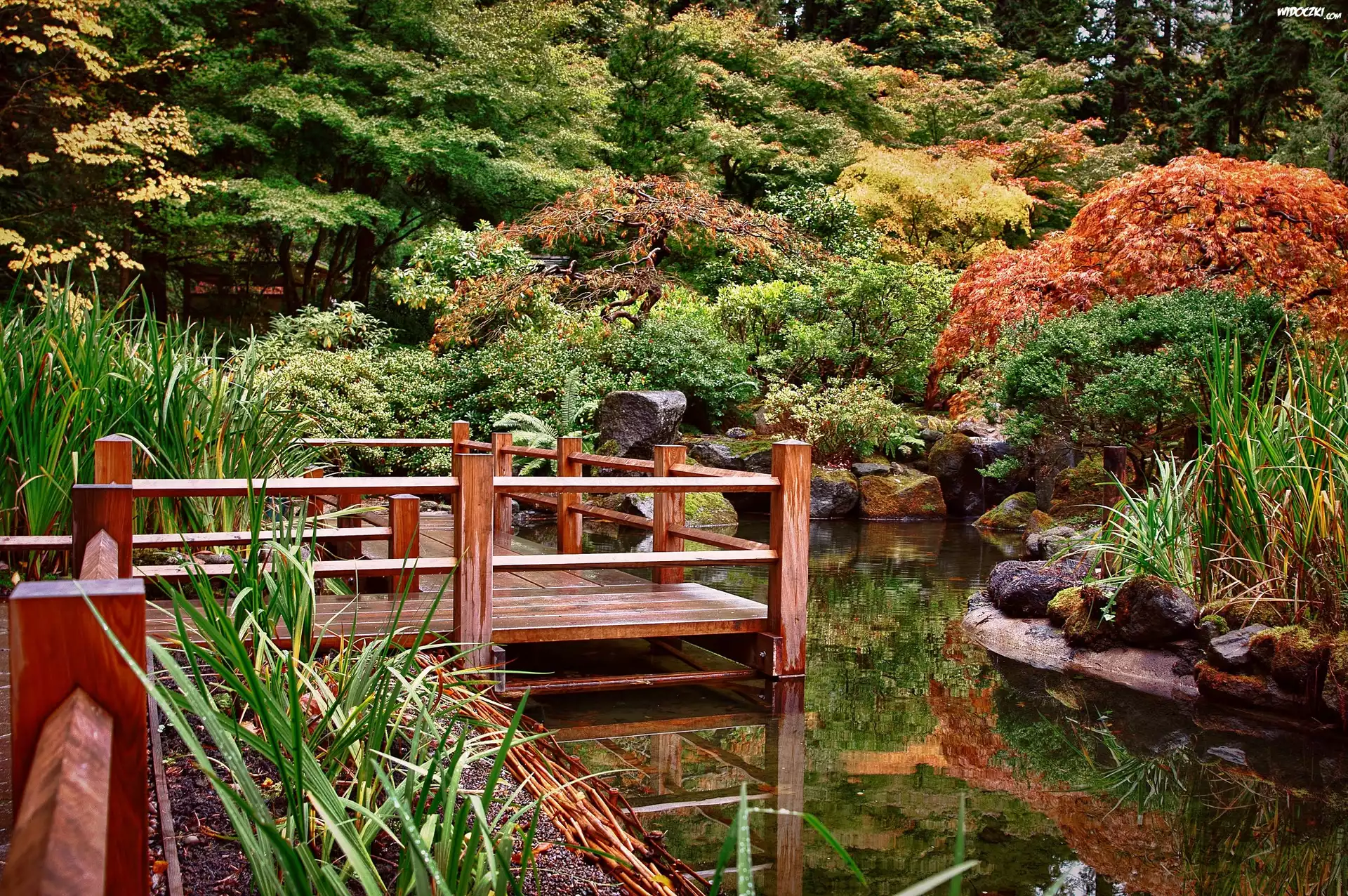 Park, Japoński, Ogród, Sadzawka, Jesień