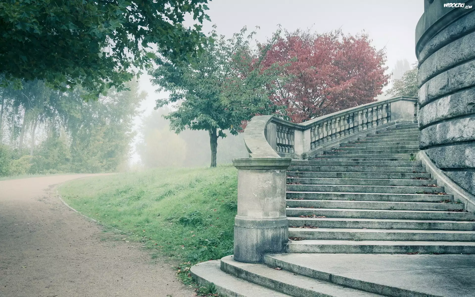 Zdjęcia, Park, Aleja, Schody, Drzewa