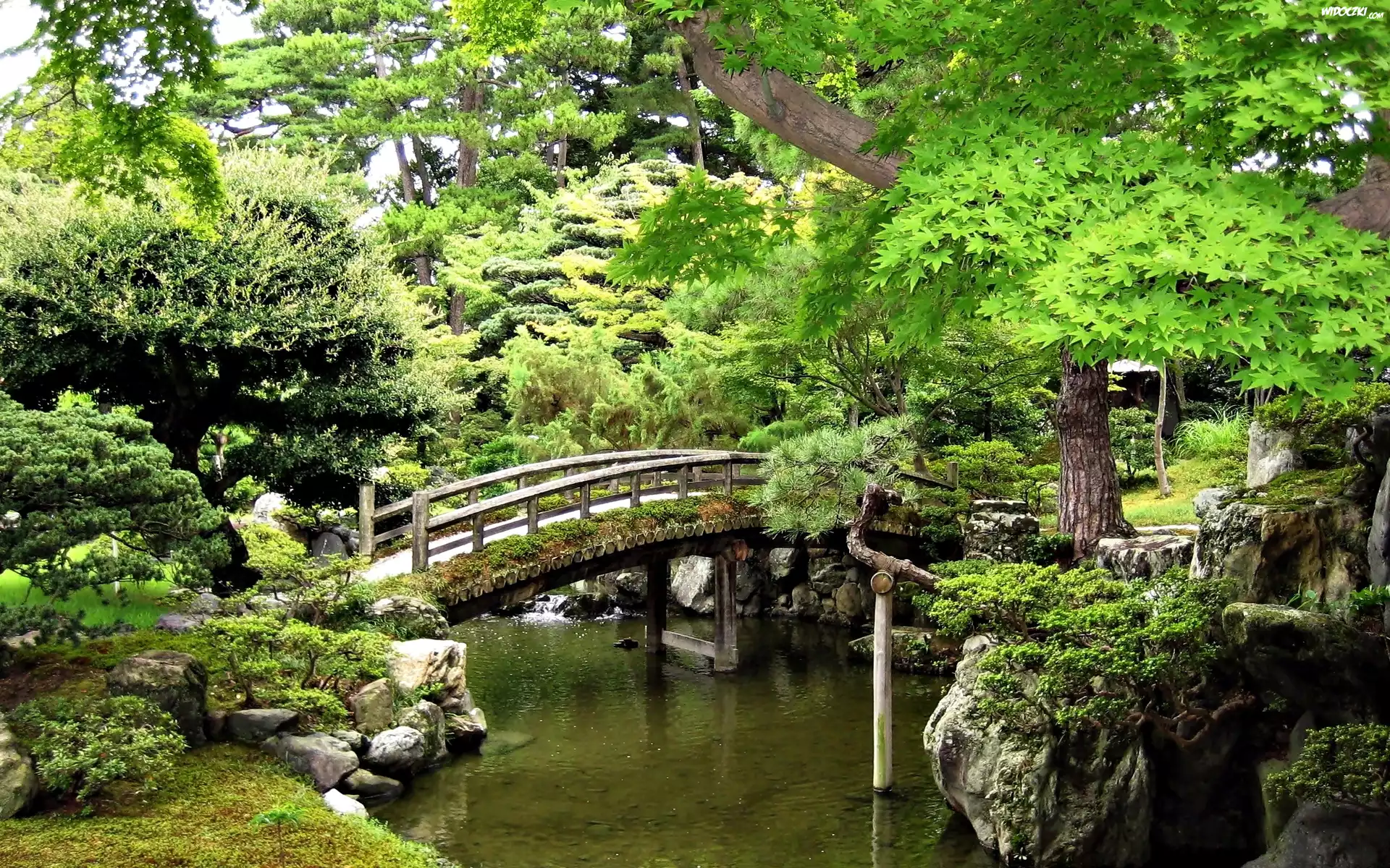 Zdjęcia, Park, Staw, Skałki, Mostek