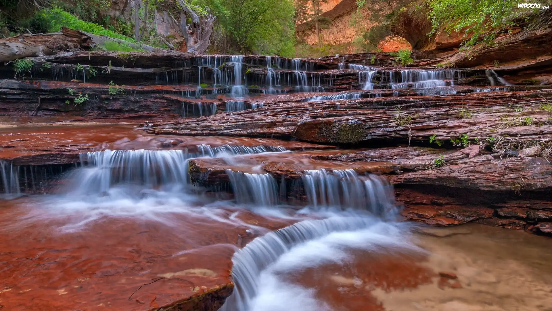 Zdjęcia, Skały, Wodospad, Cascade Falls, Kaskada, Park Narodowy Zion, Stan Utah, Stany Zjednoczone