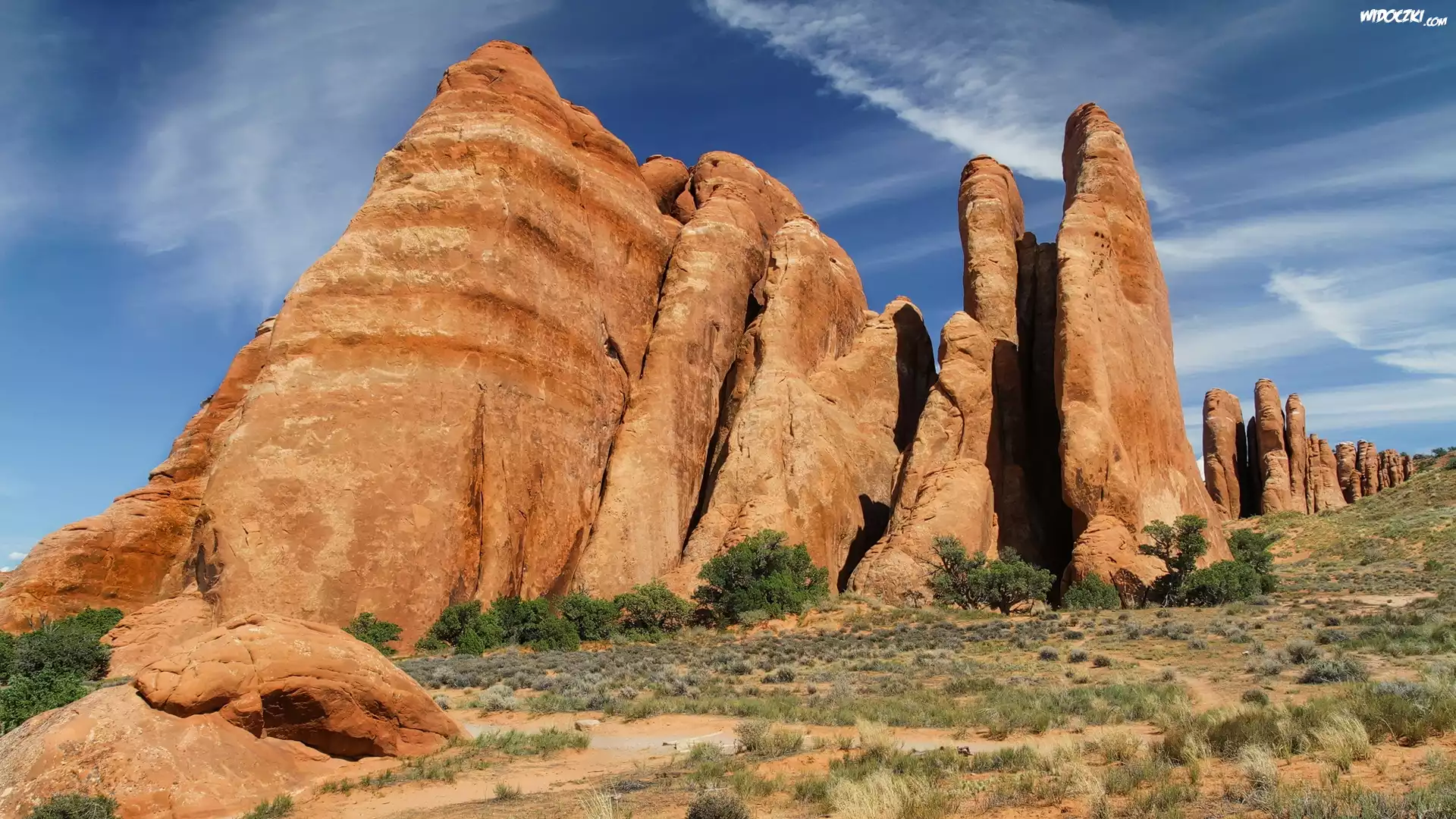 Zdjęcia, Skały, Drzewa, Krzewy, Suchy, Konar, Park Narodowy Arches, Stan Utah, Stany Zjednoczone