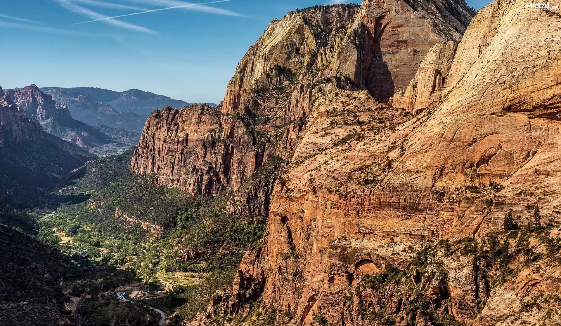 Park Narodowy Zion, Kanion rzeki Virgin, Zion Canyon, Rzeka Virgin, Skały, Stan Utah, Stany Zjednoczone |