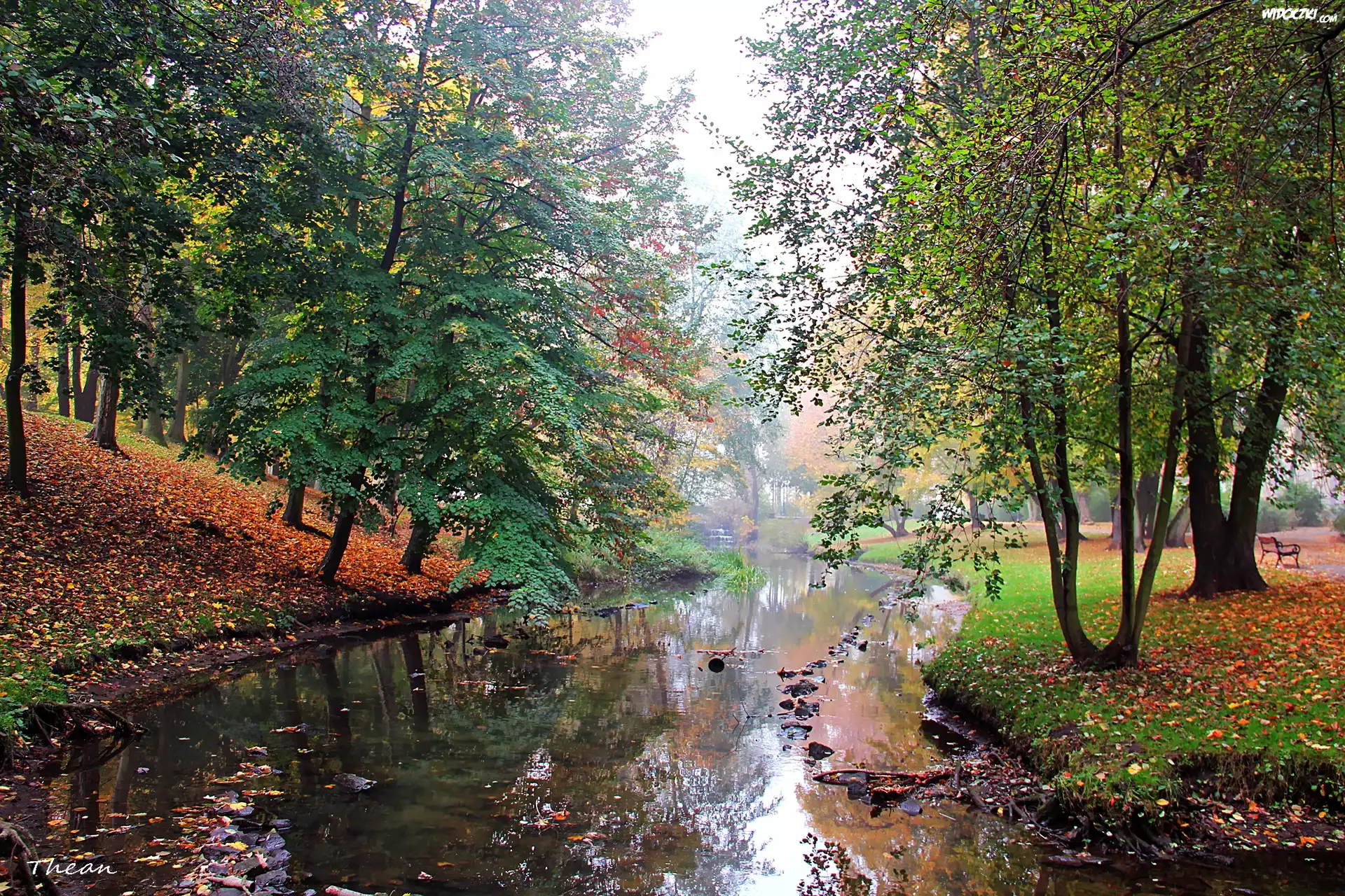 Zdjęcia, Strumyk, Park, Mgła